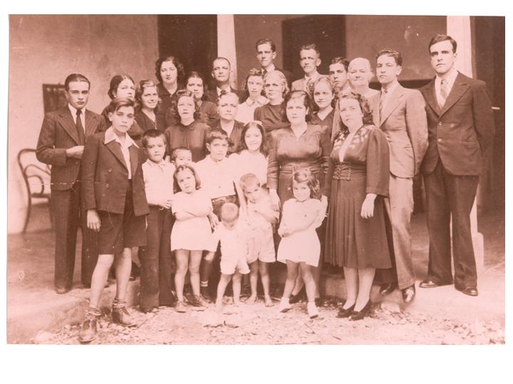 Los hermanos Quintero Valdés con sus hijos durante el aniversario de la muerte de doña Maria Valdés de Quintero. Pradera. 1939.