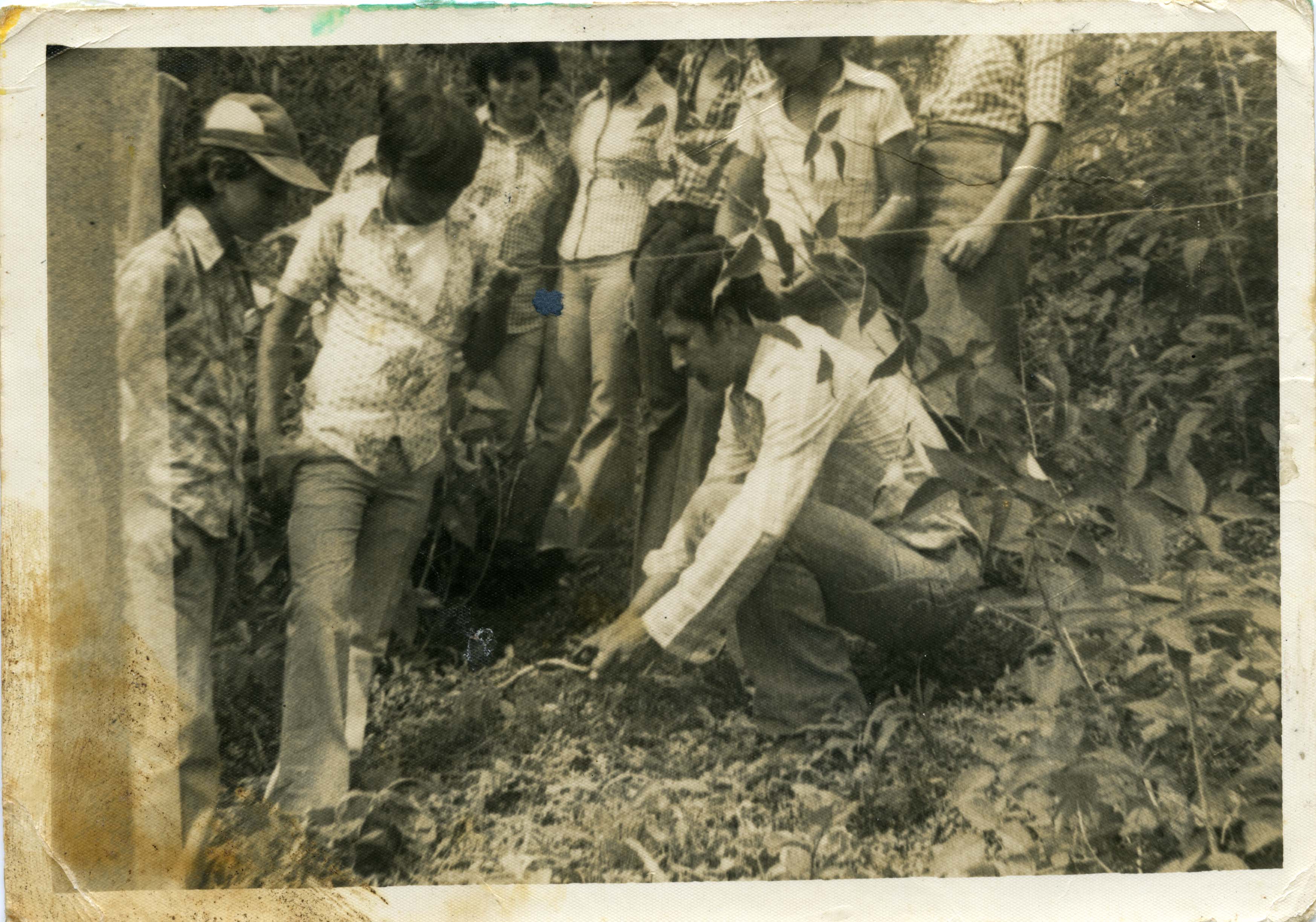 Profesor Ciro Román enseñando sembrar mora. Argelia