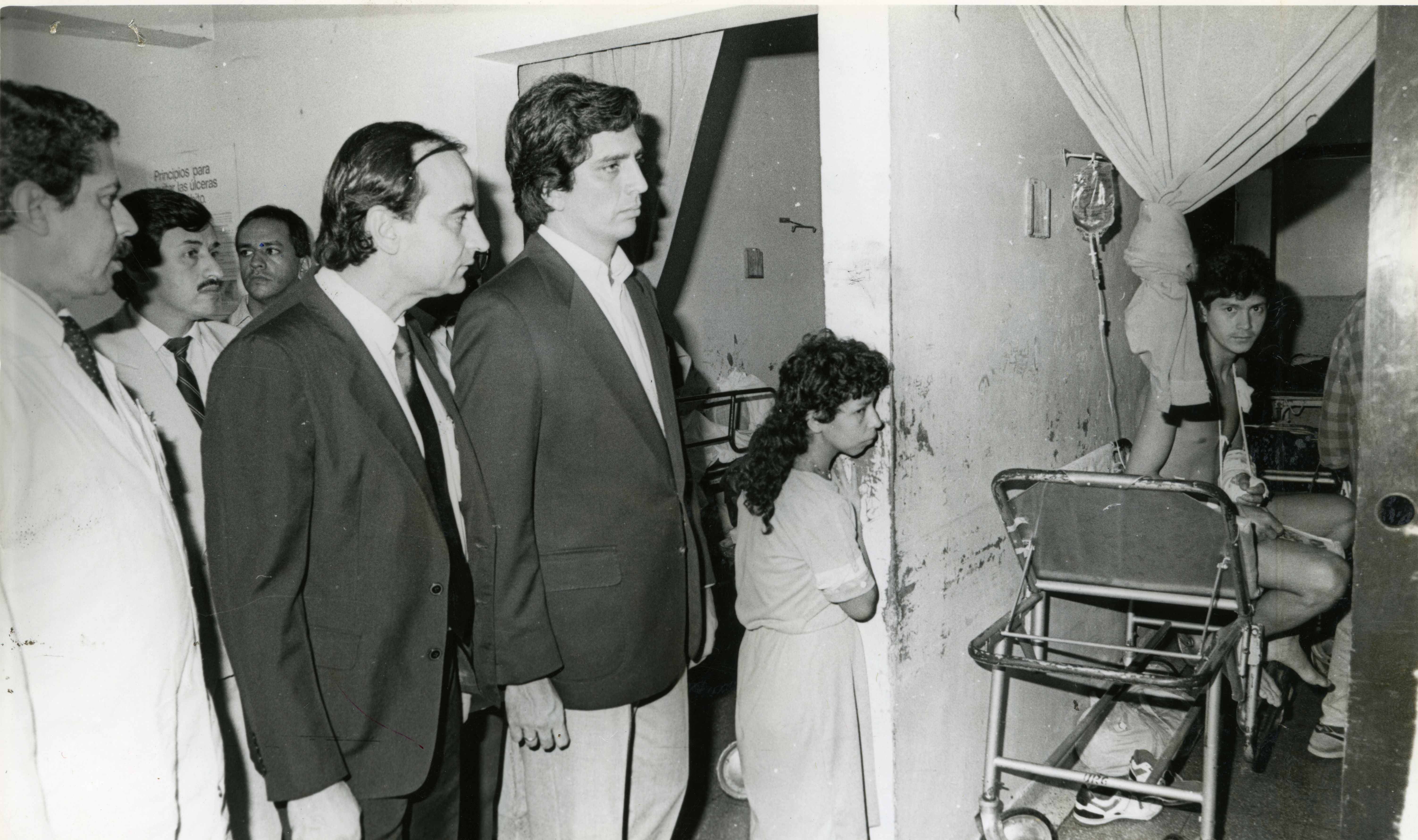 Visita a la sala urgencias del Hospital Departamental, gobernador, Mauricio Guzmán Cuevas. Apreciamos en compañia del gobernador a Luis Fernando Cruz Gómez, secretario de Salud del Valle, Marco Tulio Galarza, director HUV