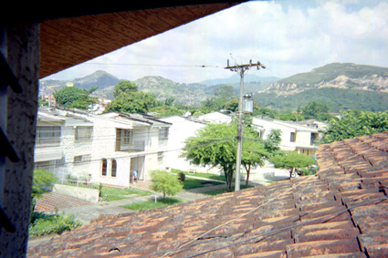 Plano general. Imagen tomada en exterior, donde se puede apreciar el tejado de una vivienda. Al fondo algunas viviendas con muros de color blanco.