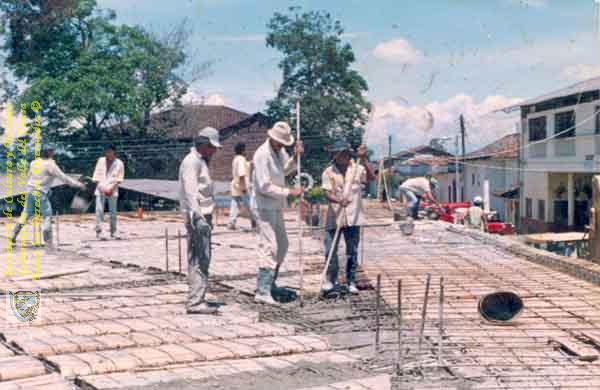Trabajadores en la construcción de la actual plaza de mercado. C. 1989.