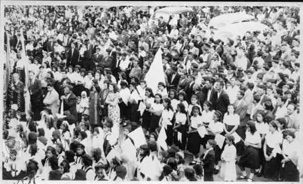 Toda esta atención es para el discurso del padre Buenaventura. 1949
