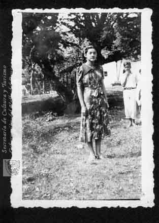 Rosa María Montaño de D´Croise en las afueras de su casa en el Barrio San Nicolás. Cali. C. 1955.