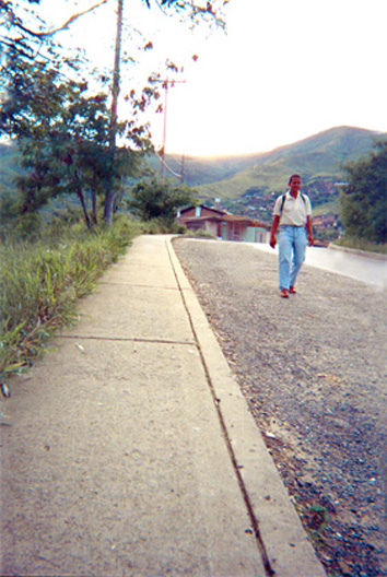 | dc.description | Plano general. Habitante del sector caminando por el medio de la vía. Estado regular del pavimento. En el centro de la imagen una vivienda y otras desplegadas en la falda de la montaña. | spa |