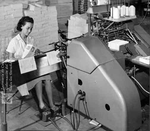 Empleada de la sección libros y revistas, planta de CARVAJAL.