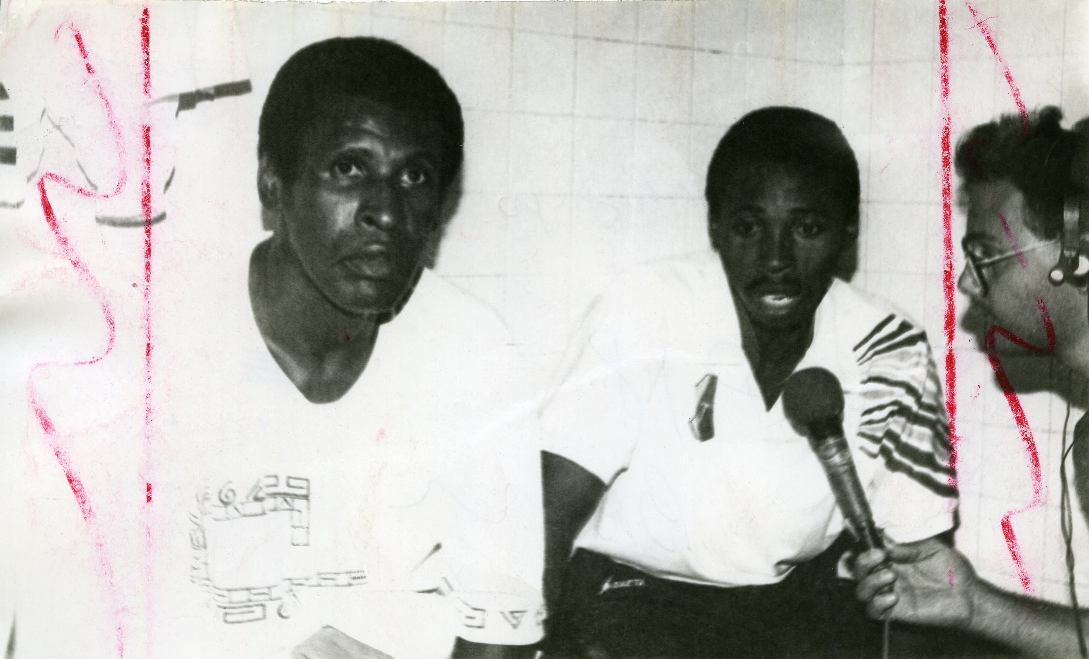 En la gráfica se aprecia al jugadores de fútbol Carlos Lugo y Luis Carlos Lugo en compañia de un periodista.