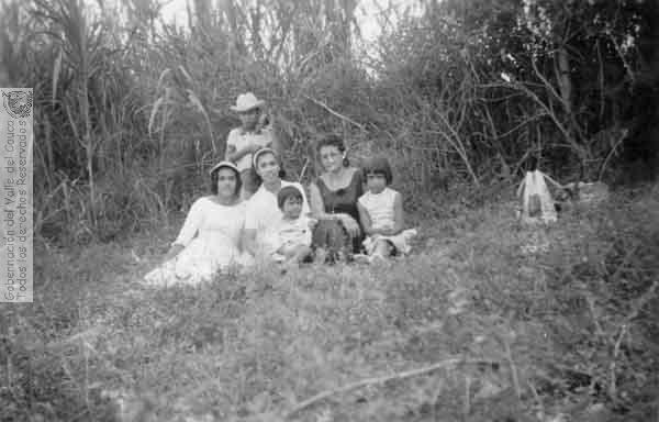 Paseo familiar al río Bolo en Pradera. 1960. Los paseos familiares al río no eran recreativos, en ellos los niños aprendían a nadar, a pescar, y a conocer plantas y animales de la natureza.