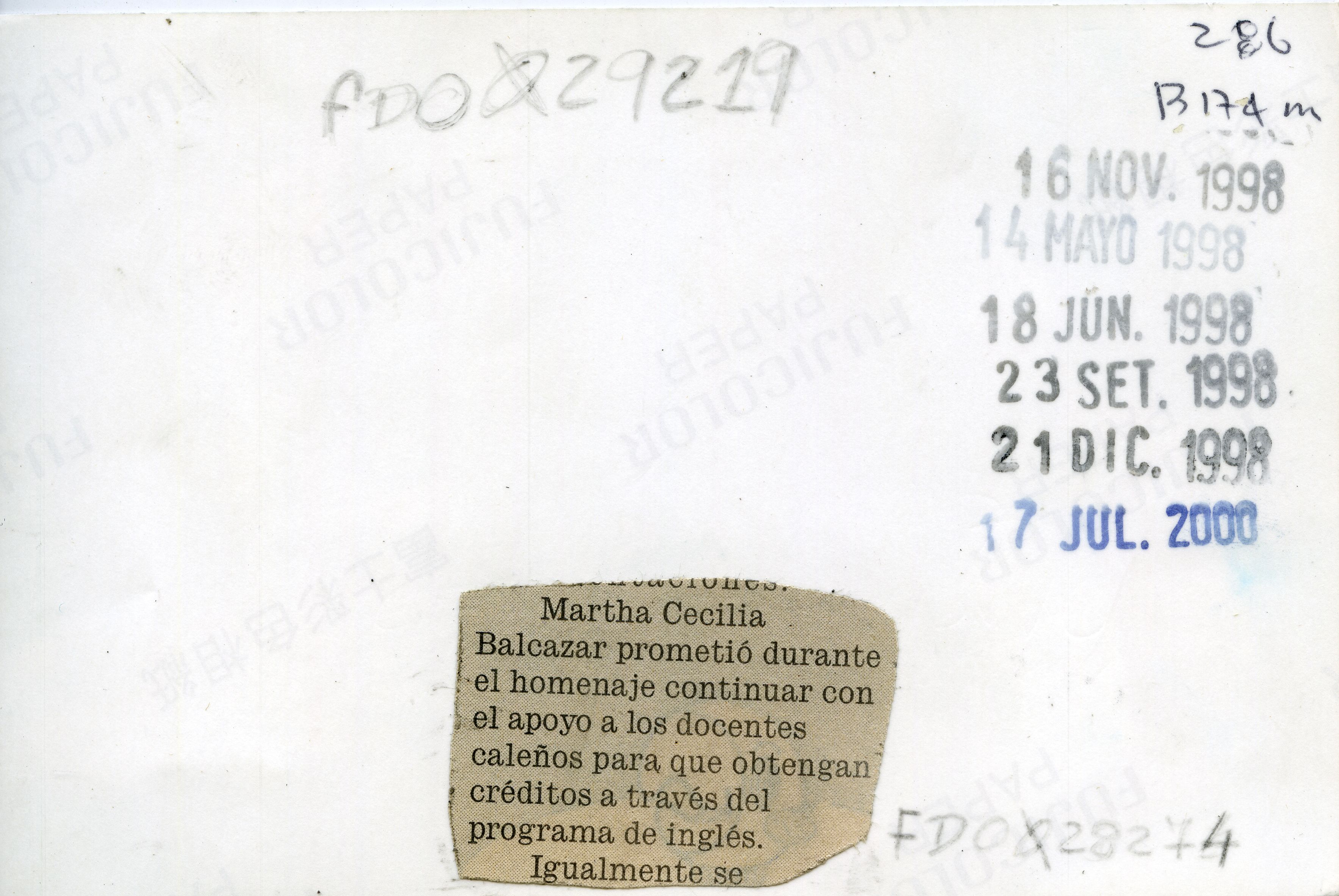 Martha Cecilia Balcázar, prometió durante el homenaje continuar con el apoyo a los docentes caleños para que obtengan créditos a través del programa de inglés.