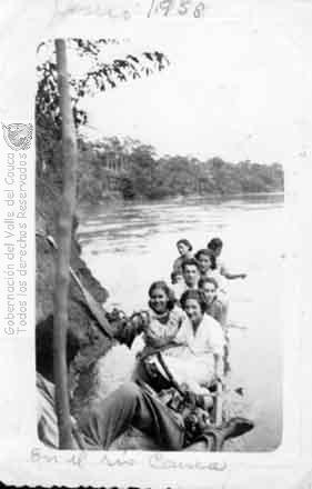 Tarsila Cardona y amigos, de paseo por el río Cauca. Bolívar, 1938.