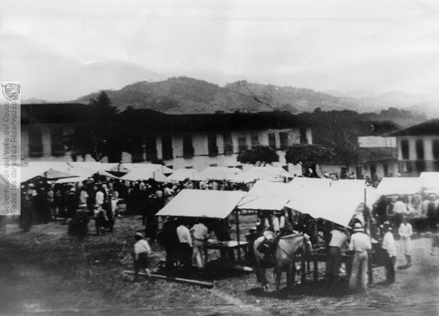 s. n., s. n., s. n., s. n. & s. n. (1930). Toldos que se hacían para el día de mercado en las plazas o parques centrales de los pueblos & 603569. DARIEN: Biblioteca Departamental Jorge Garces Borrero.