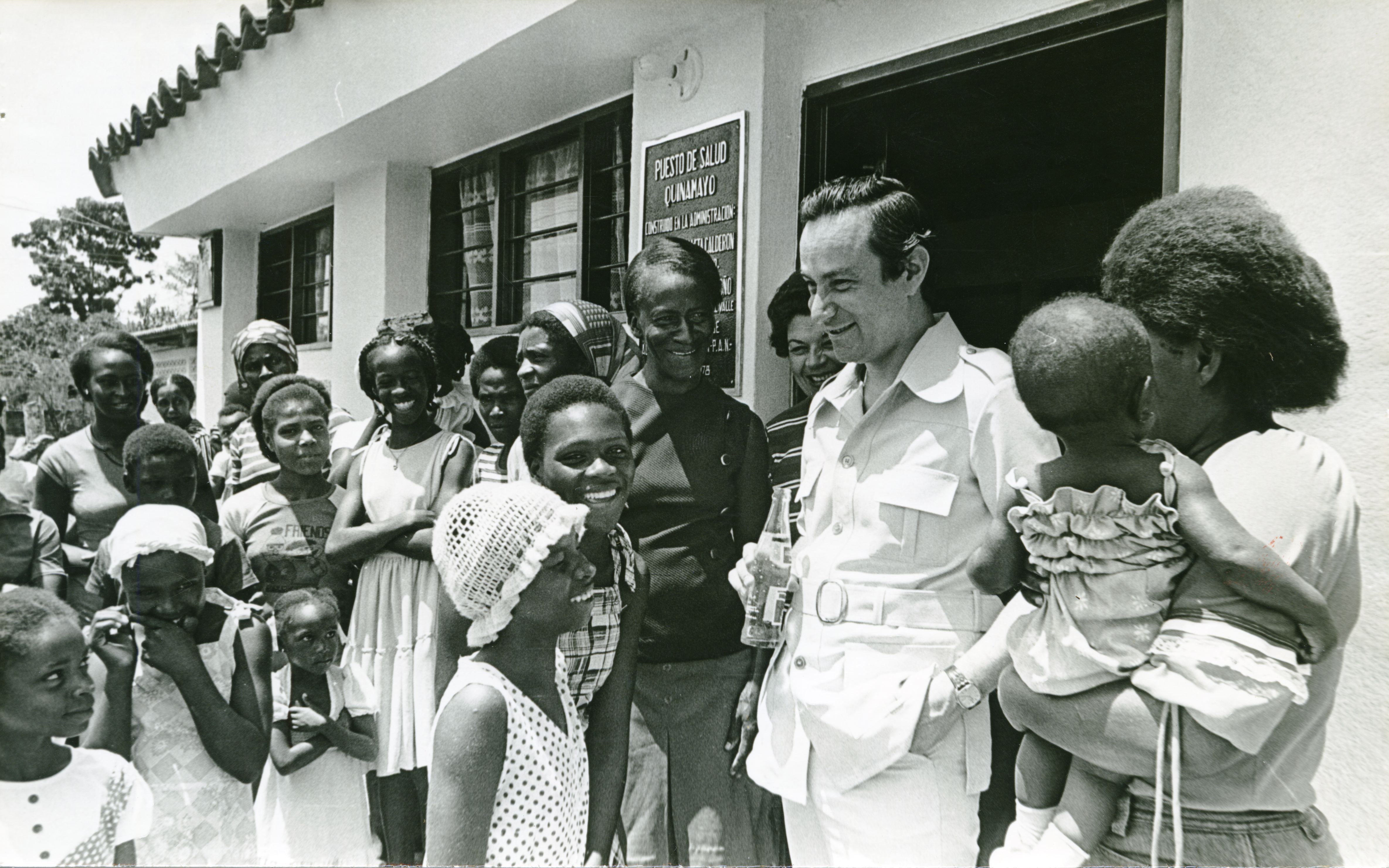Jaime Arizabaleta Calderón fue gobernador del valle en el periodo del 1 de septiembre de 1978 al 11 de septiembre de 1980. Perteneció al partido Liberal Colombiano. Se observa Jaime Arizabaleta Calderón, en el puesto de salud Quinamayó Jamundí Valle del Cauca conversando con los habitantes.