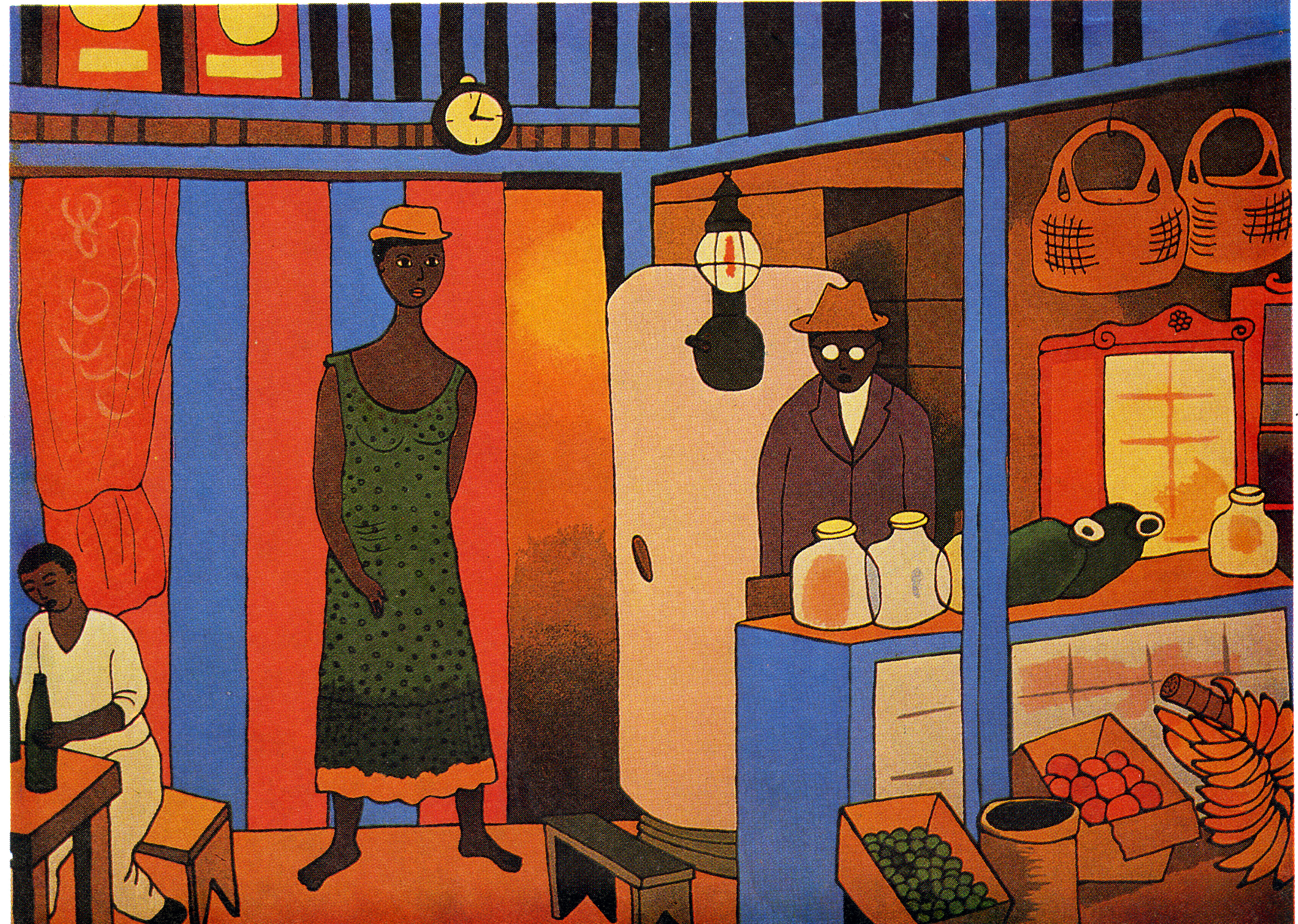 En el pie de foto dice lo siguiente: Hernando Tejada. La tienda de Flor de Amor, Tumaco, 1957, serigrafía de 75 x 55 cm, 1989.
