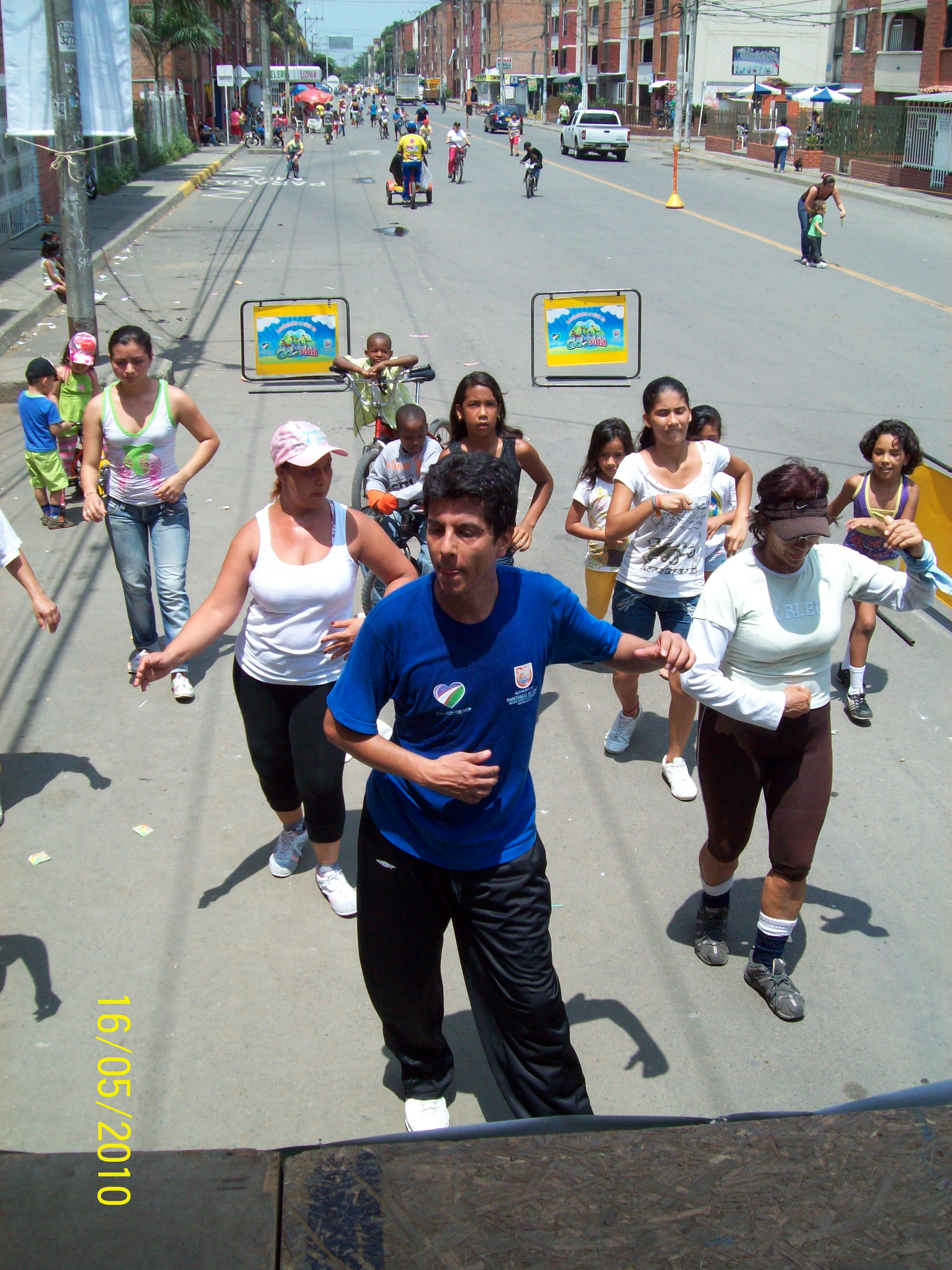 La CicloVida de Cali, es un programa de la Alcaldía de Santiago de Cali, liderado por la Secretaría del Deporte y Recreación, actividad incluyente para toda la ciudadanía, donde se cierran temporalmente las calles para los vehículos y se abren para los habitantes de la ciudad, todos los domingos de 8:00 am a 1:00 pm para que disfruten de un espacio seguro y gratuito para que en familia o amigos disfruten de la actividad física, recreación, deporte y cultura. Se aprecia en la imagen, clase dirigida de aerorumba por instructor. Observamos adultos y niños