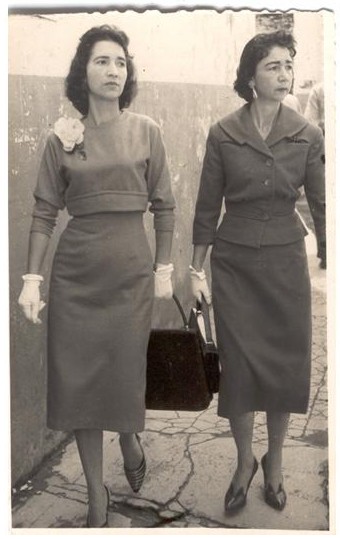 Hermanas Arcila, de paseo por el centro de la ciudad. Cartago, 1955.