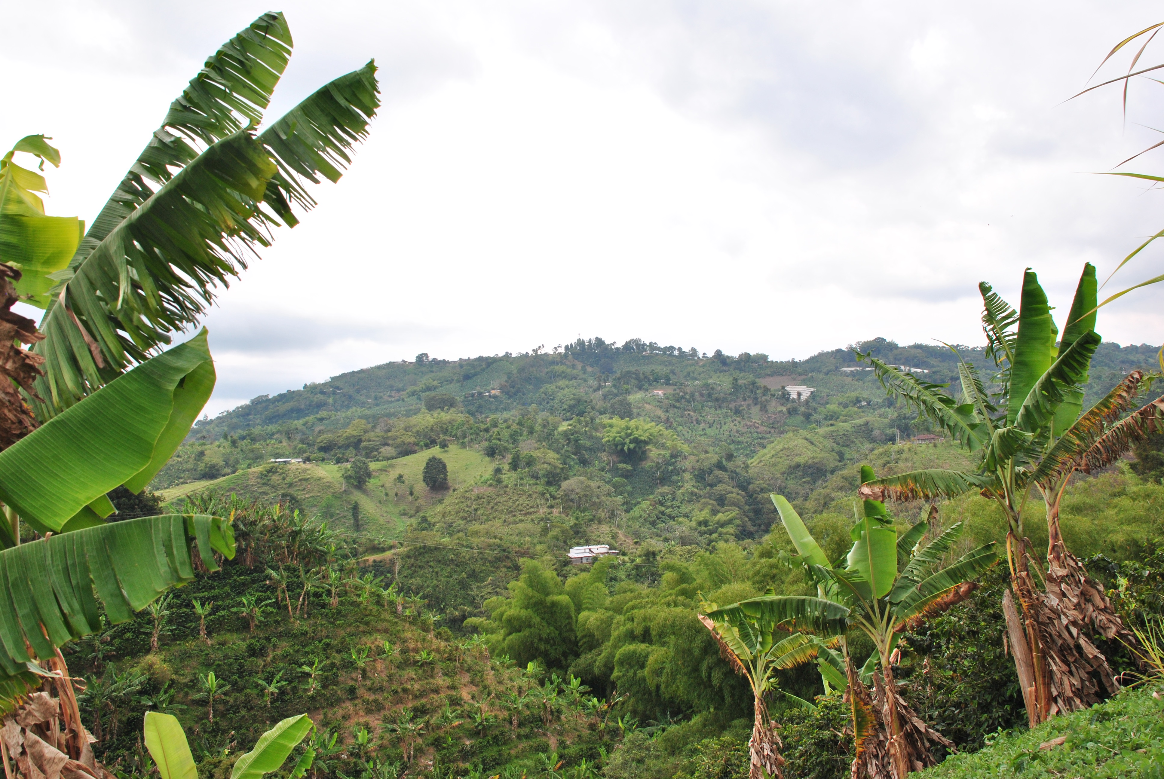 Ulloa, Valle del Cauca. Fundado en 1922, por Leocadio Salazar. Nombres: Villa Sucre. Municipio desde 1928. Economía importante en Agricultura, Ganadería, Trapiches Paneleros, Trilladoras de Café y Riqueza Natural. Observamos en la imagen, panorámica de la zona montañosa. Se aprecian los cultivos de café y plátano