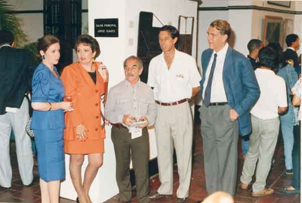 VIII Salón de Artes Plásticas en la Sociedad de Mejoras Públicas, entre los asistentes: Piedad Maya de Rojas, el maestro Hernando Tejada. Santiago de. Cali, 1991.