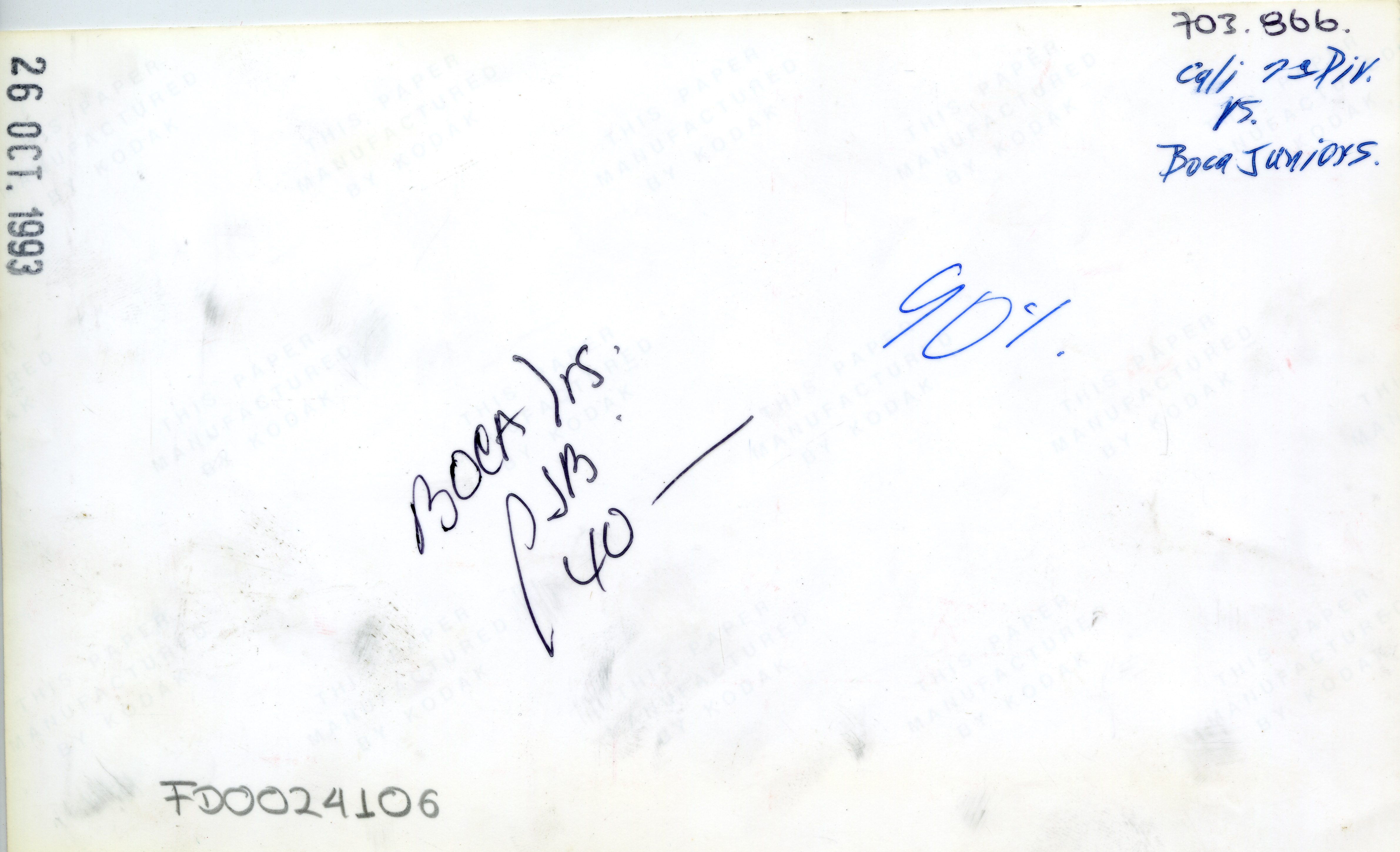 En la gráfica partido entre los equipos Boca Juniors vs Deportivo Cali, segunda división. Se aprecia la disputa del balón