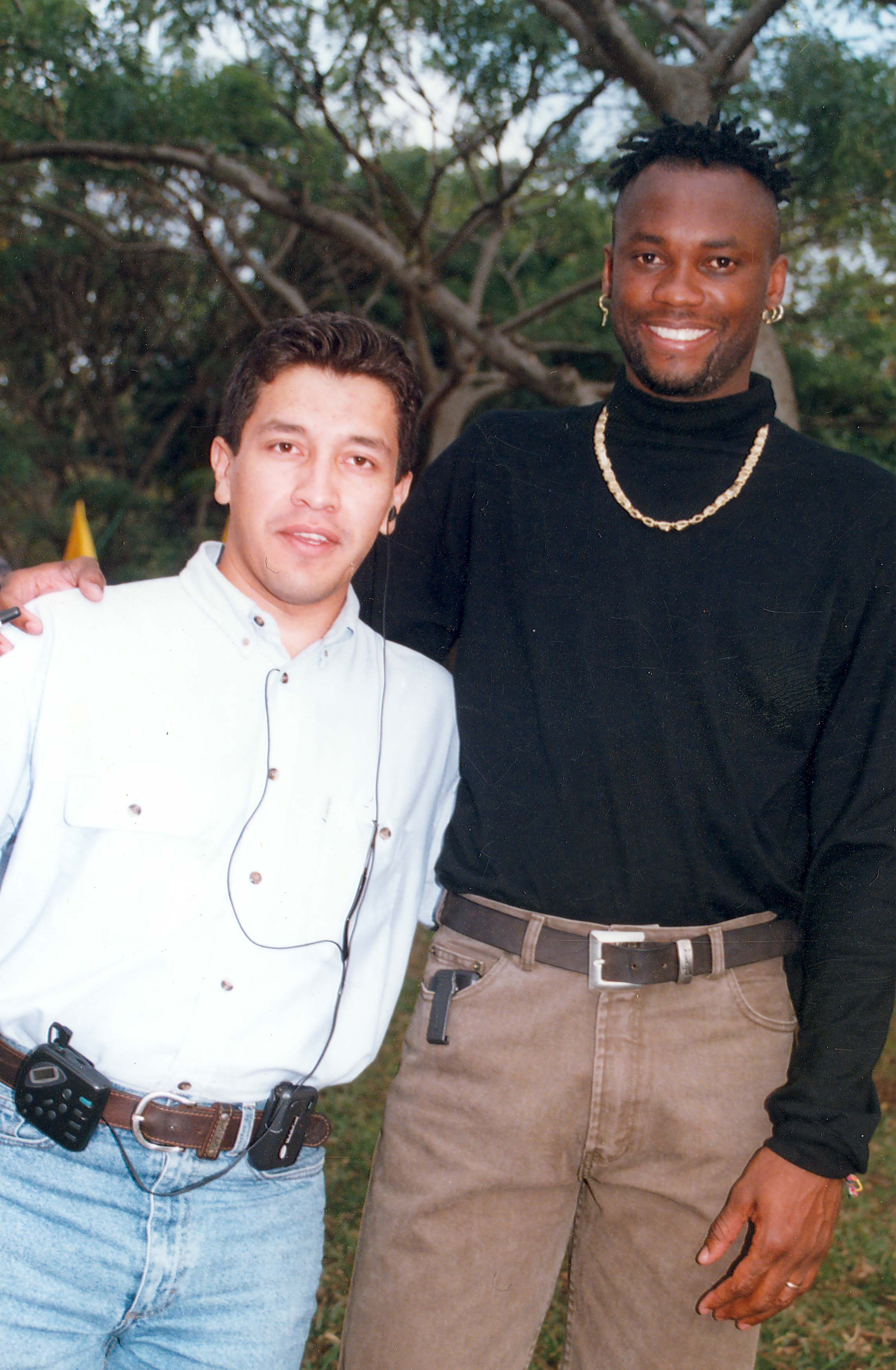 Diario Occidente (1997). Yinner Bravo, comunicador social, junto a Albeiro “el Palomo” Usuriaga. Santiago de Cali: Biblioteca Departamental Jorge Garcés Borrero.