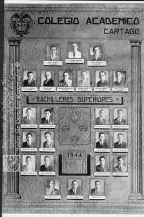 Mosaico de bachilleres superiores del colegio Académico, promoción de 1944. Cartago. 1944.