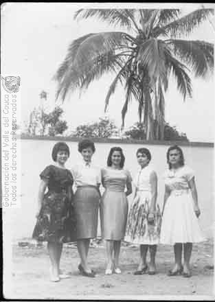 Grupo de profesoras de la Escuela Santa Isabel:Cecilia Devia, Efraín Tovar, Martha Upegui, María Elena Londoño. Pradera, 1960.
