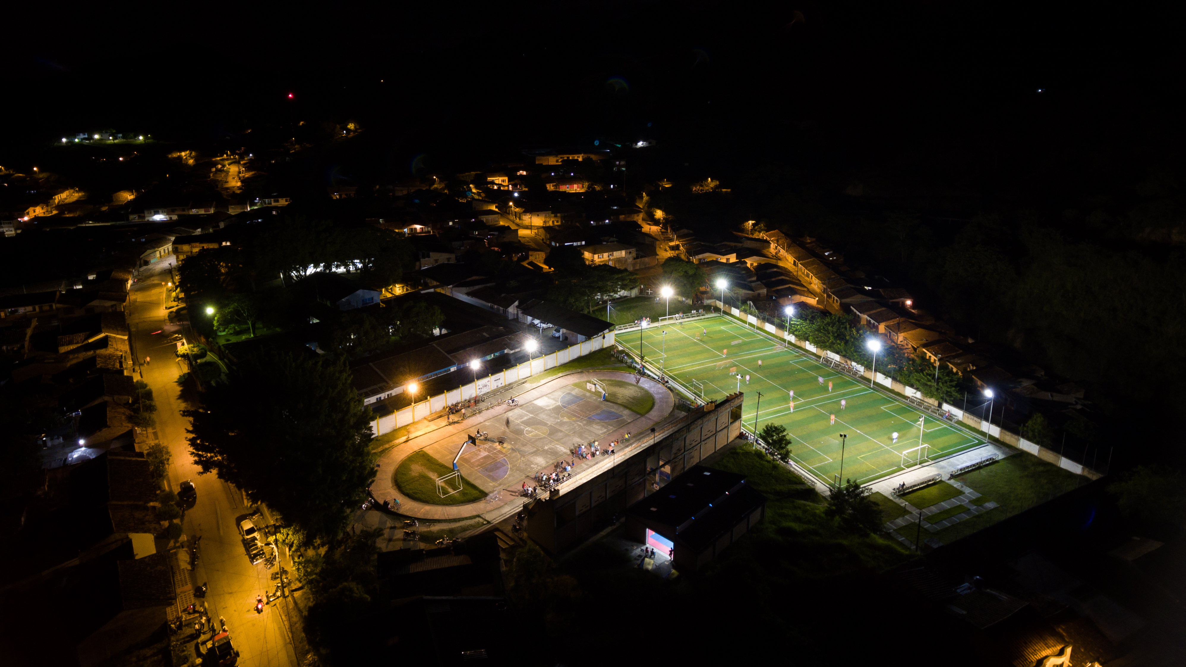 Vista nocturna de las canchas deportivas de Ansermanuevo