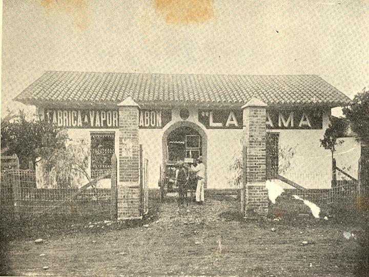s. n., s. n., s. n. & s. n. (1920). Edificio donde funcionaba la Fábrica a vapor de Jabón "La Fama", fundada en 1909 por la sociedad Reyes y Bustamante, la cual estaba dedicada al comercio, a la importación y exportación & A715. SANTIAGO DE CALI: Biblioteca Departamental Jorge Garces Borrero.