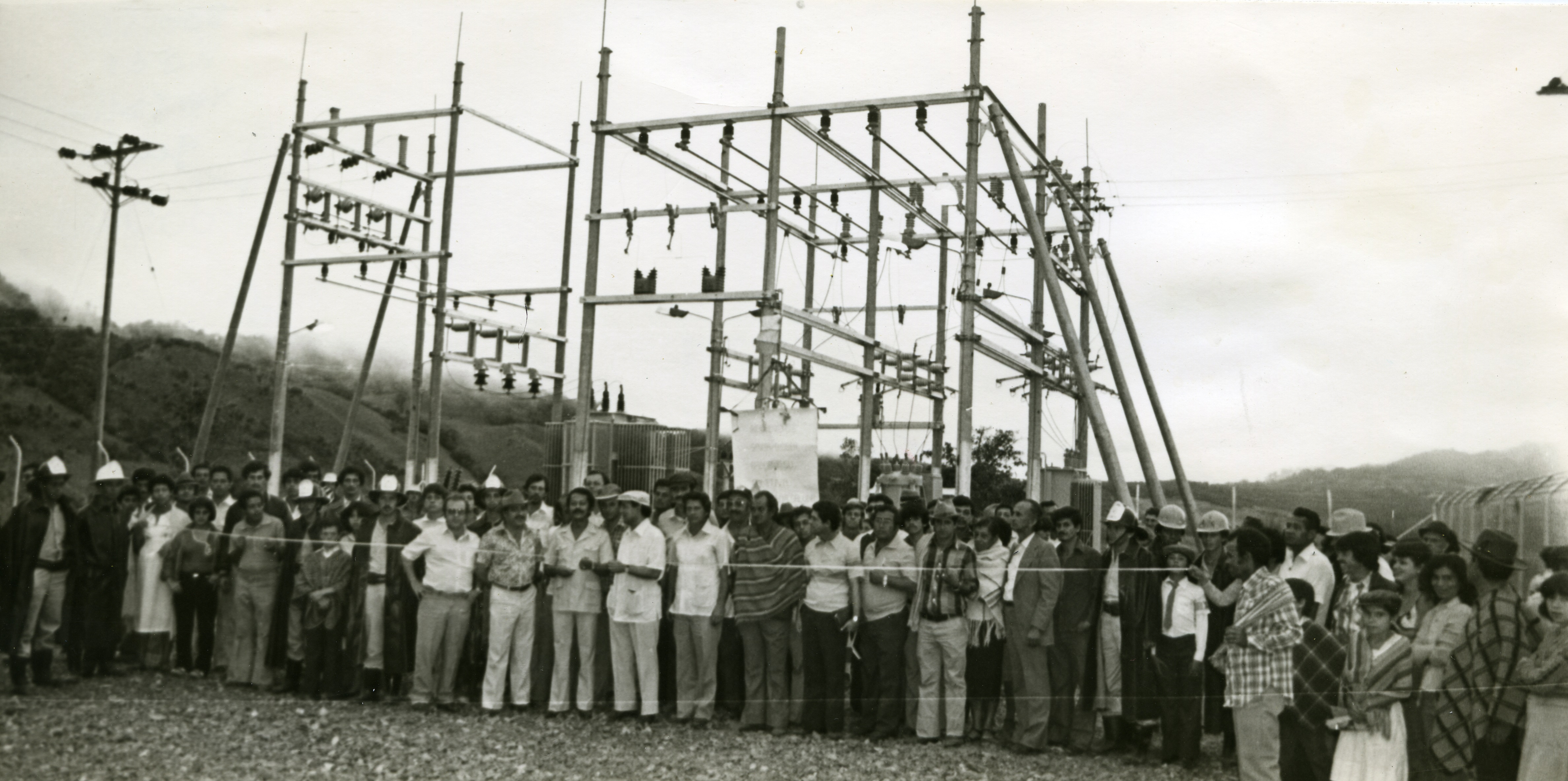 Al reverso de la fotografía se anexa recorte: "Aspecto de la inauguración de la Subestación de energía La Florida en Versalles y que beneficia los municipios de Argelia, El Cairo, Versalles y El Dovio"