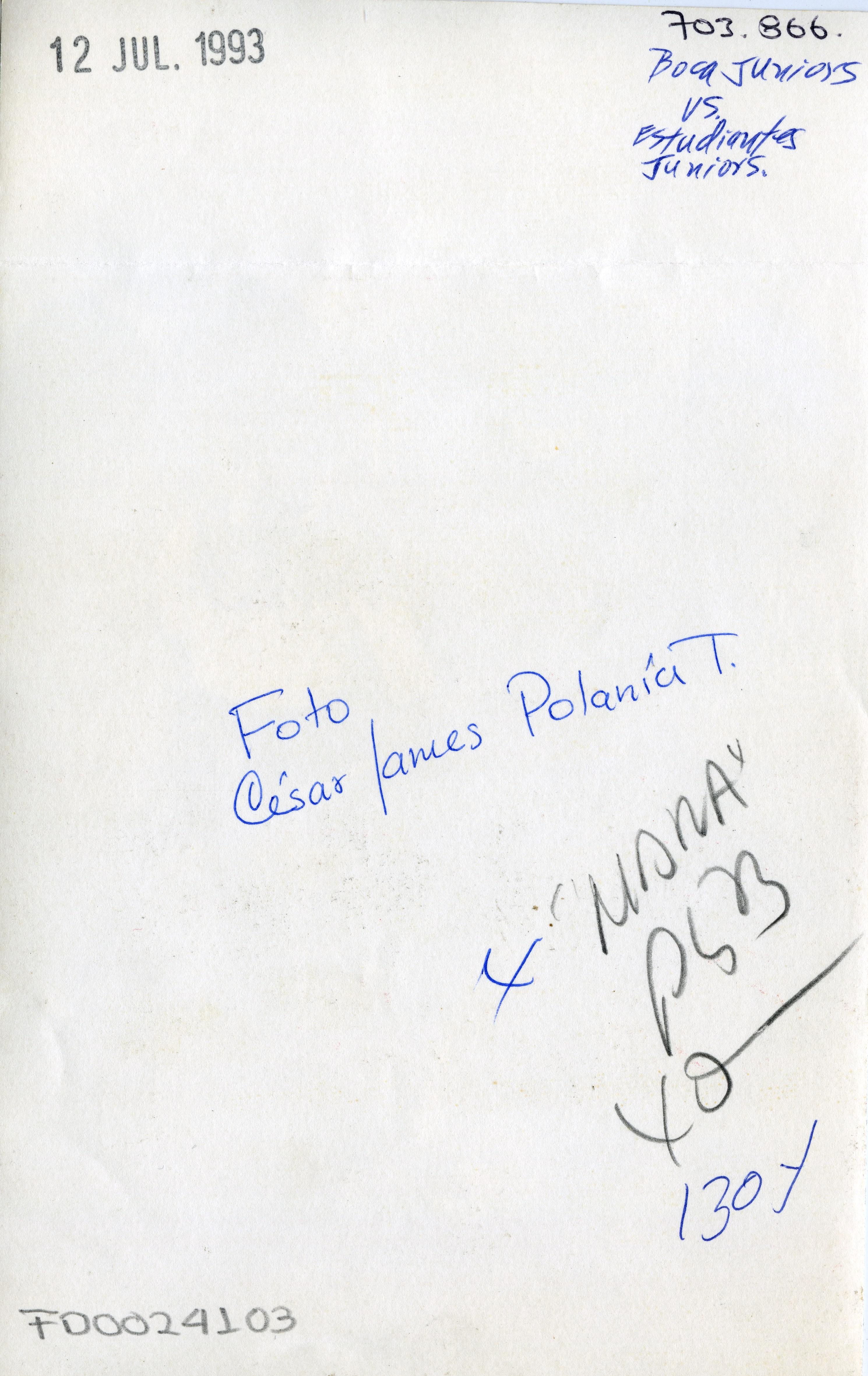 En la gráfica escena del partido de las divisiones inferiores de Boca Juniors y Estudiantes Juniors. Se aprecia jugador de Boca domina el balón