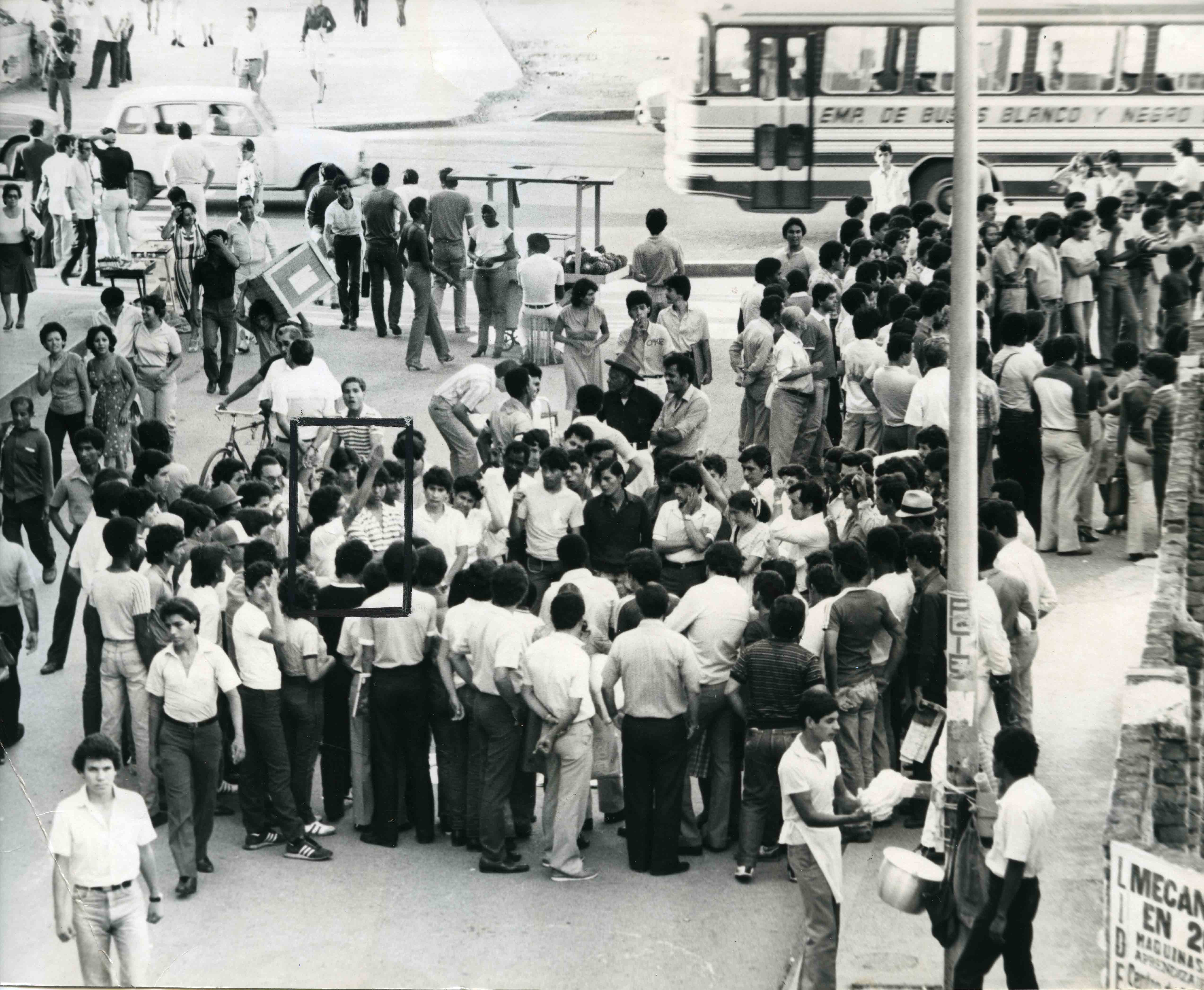 López, L. (1984). Gran aglomeración de personas en presentaciones callejeras. Santiago de Cali: Biblioteca Departamental Jorge Garcés Borrero.