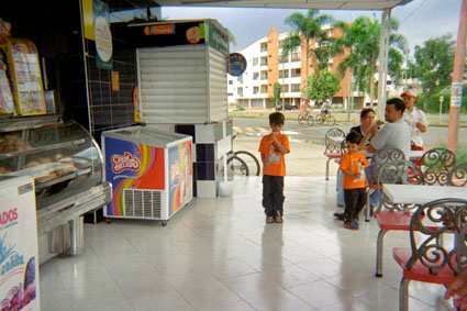 Perea Puertas, L. J. (2005). Imagen tomada en el interior de una panadería, donde hay algunas personas sentadas en una mesa. Santiago de Cali: Biblioteca Departamental Jorge Garces Borrero.