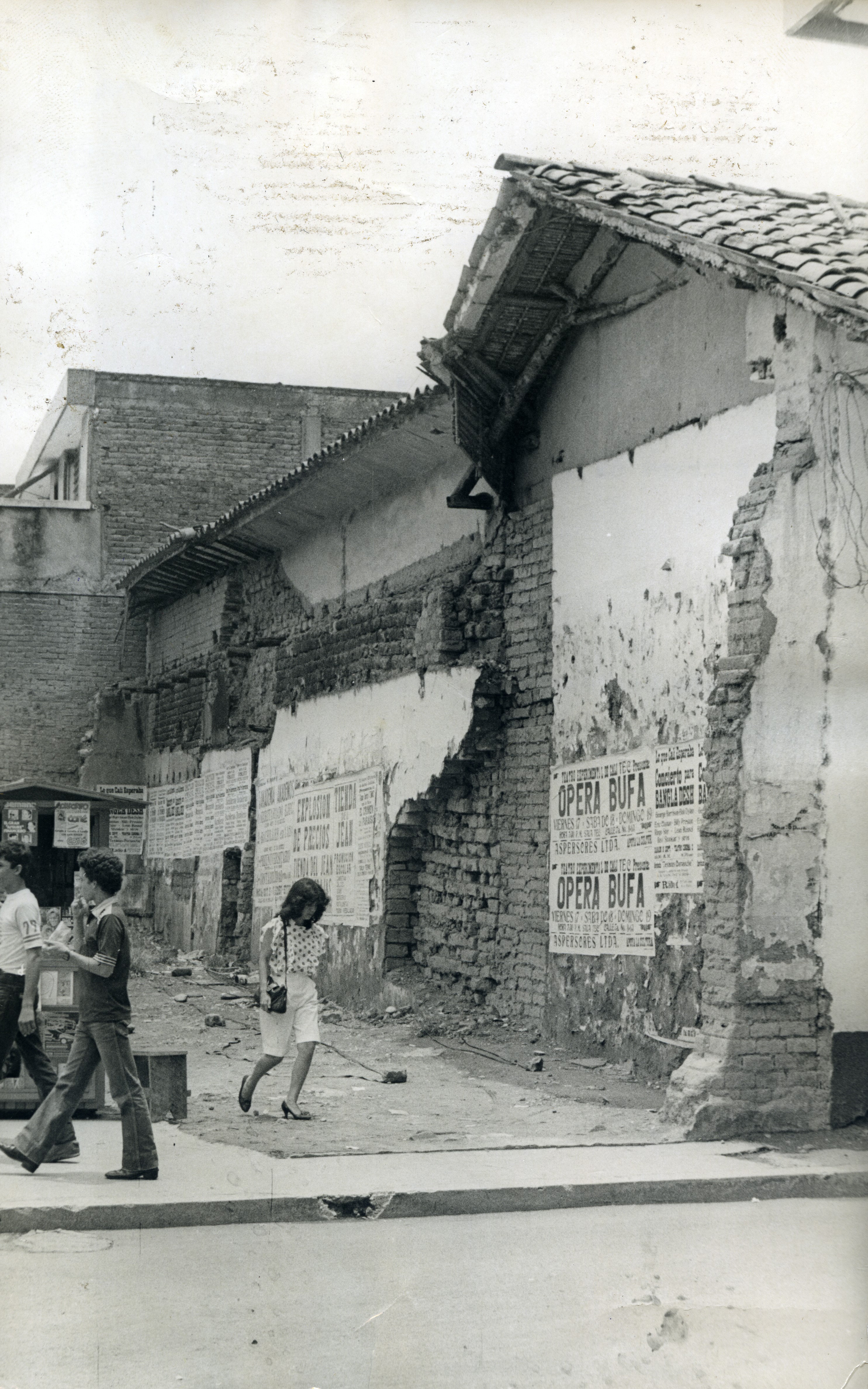 Casas están abandonadas. Al reverso de la fotografía dice lo siguiente: "Ruinas del Cali viejo?. Toma en la esquina de la calle 8a con carrera 6a".