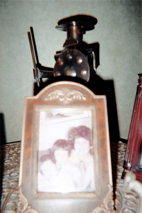 Primer plano. Retrato de retrato de la autora y su familia. Imagen tomada con flash.