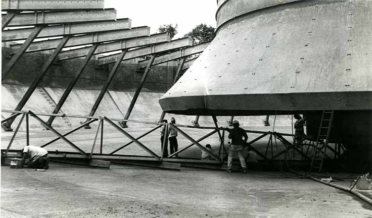 En el pie de foto dice lo siguiente: Este es el equipo de cuchillas que sirven para limpiar los residuos que contienen las aguas en el reactor, las cuales fueron reparadas por los operarios de las Empresas Municipales de Cali en la planta de tratamiento de aguas de Puerto Mallarino.- El Archivo del Patrimonio Fotográfico y Fílmico del Valle del Cauca es responsabilidad de la Biblioteca Departamental del Valle Jorge Garcés Borrero, por convenio de cooperación suscrito con la Secretaria del Cultura Departamental, con el fin de aunar esfuerzos para su conservación, preservación y divulgación del Archivo entre la comunidad Vallecaucana, especialmente entre los estudiantes e investigadores que visitan la Biblioteca, propiciando el su uso y consulta permanente. La universidad Icesi es un colaborador en el proceso de difusión, facilitando la tecnología que permite la consulta de las imágenes.