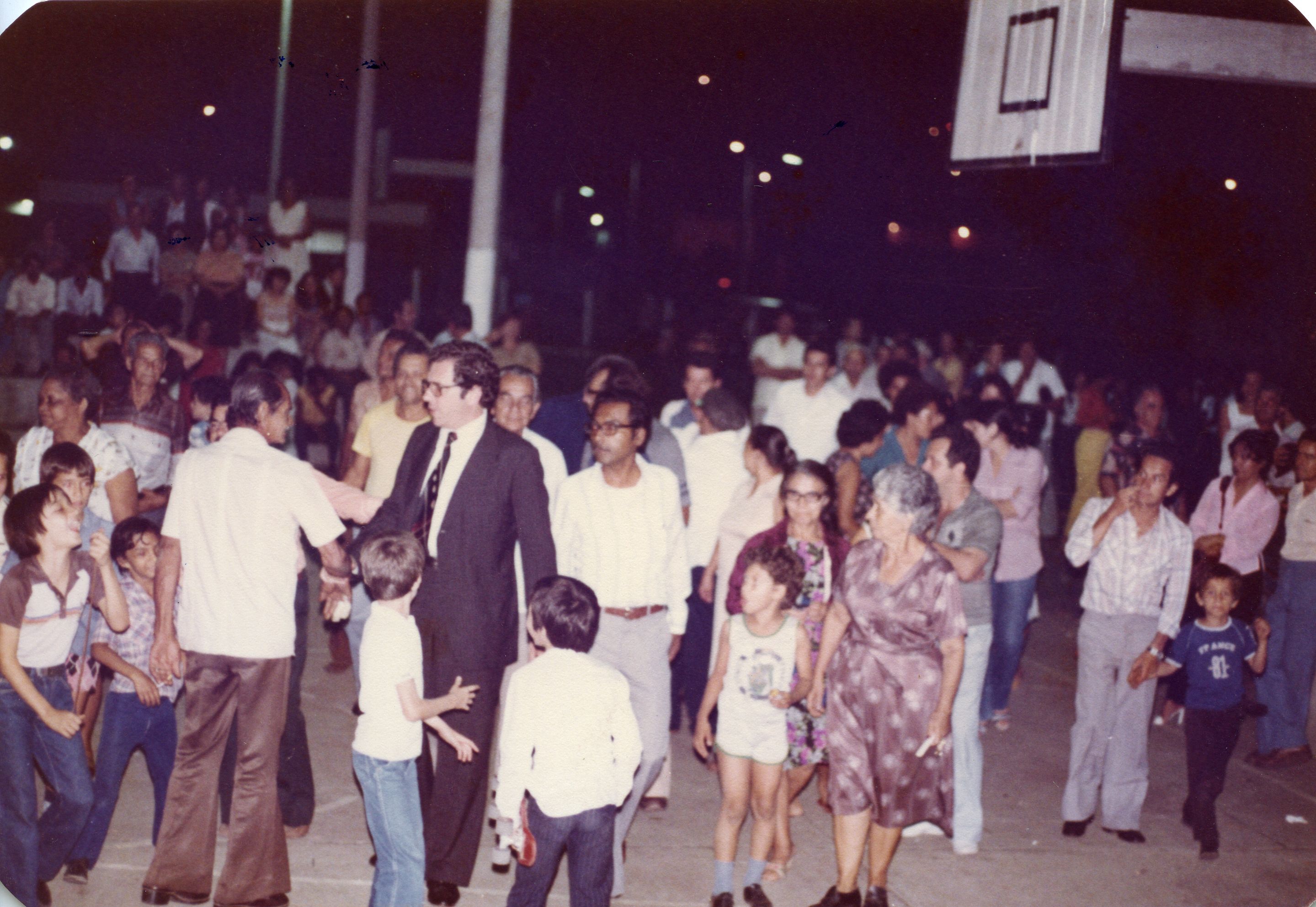 En la fotografía podemos observar al político conservador, Carlos Holguín Sardi rodeado de sus seguidores, quienes asistieron a apoyarlo en su campaña política.