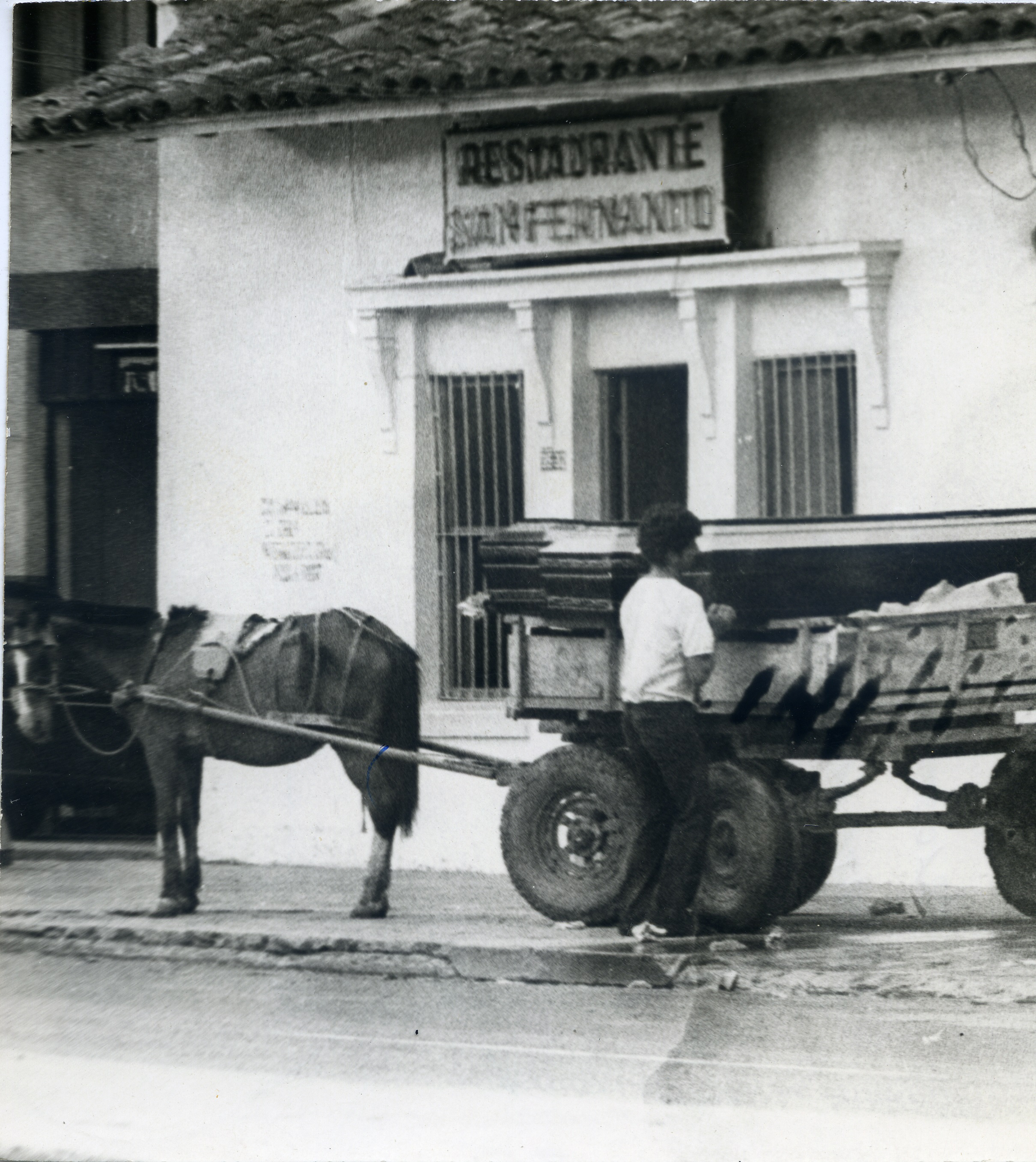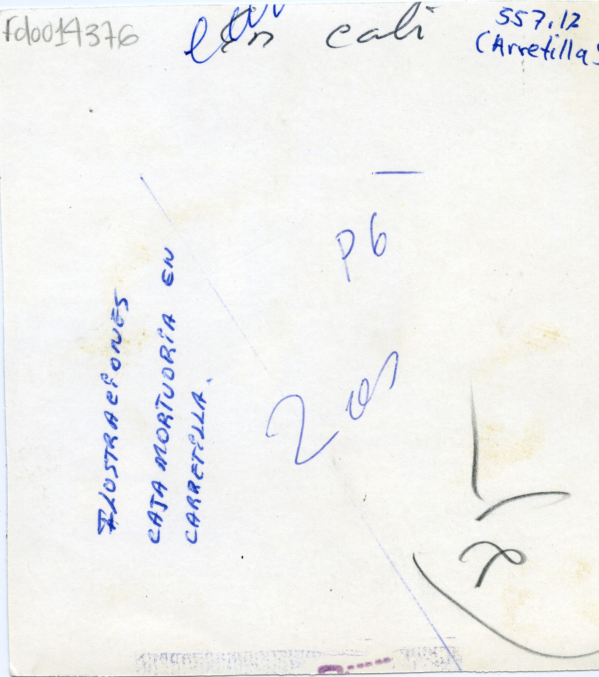 Se observa un hombre acomodando un ataúd de tres en una carretilla, frente al restaurante San Fernando.