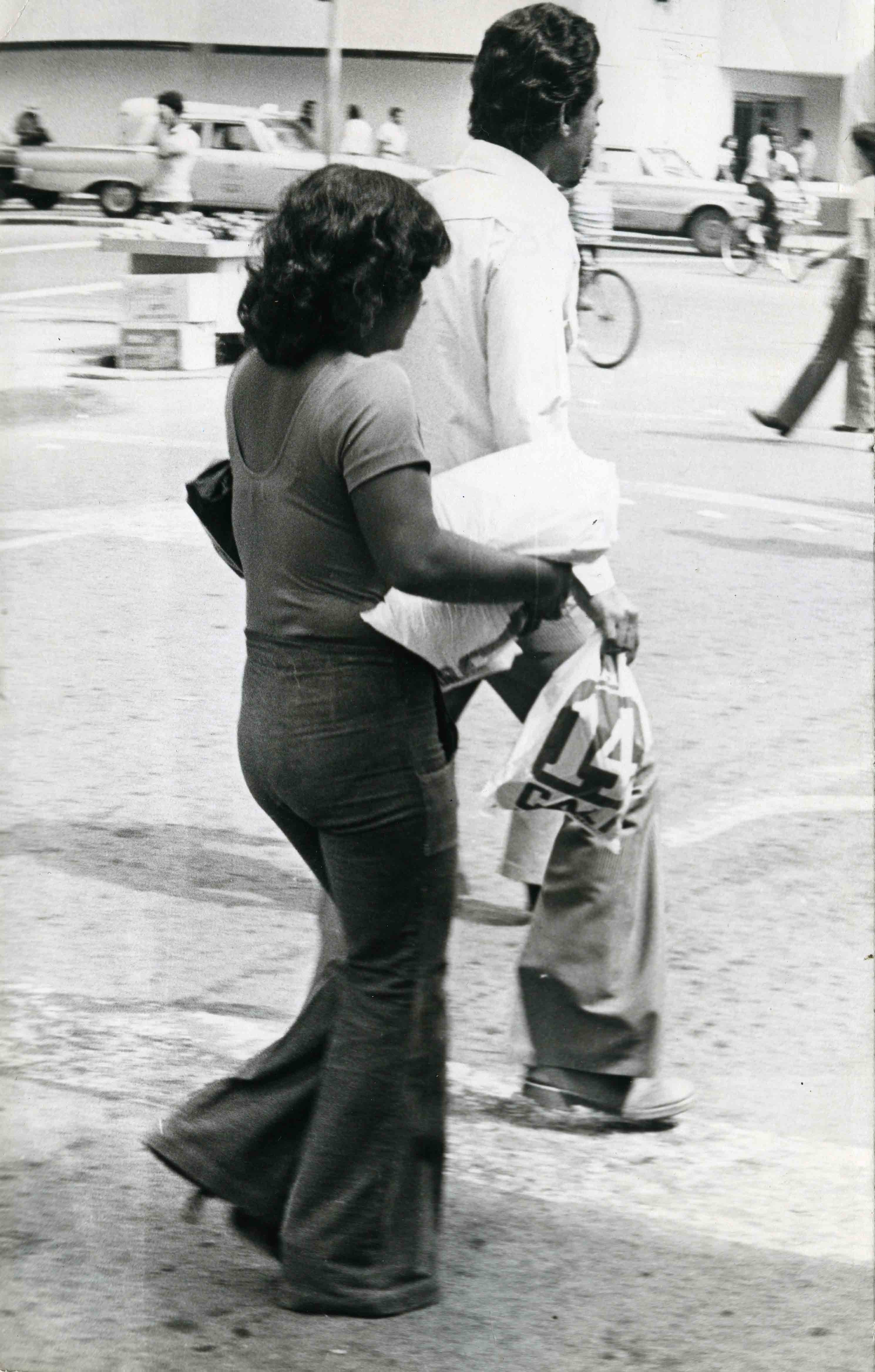 Moda de la época, pantalón bota campana.- El Archivo del Patrimonio Fotográfico y Fílmico del Valle del Cauca es responsabilidad de la Biblioteca Departamental del Valle Jorge Garcés Borrero, por convenio de cooperación suscrito con la Secretaria del Cultura Departamental, con el fin de aunar esfuerzos para su conservación, preservación y divulgación del Archivo entre la comunidad Vallecaucana, especialmente entre los estudiantes e investigadores que visitan la Biblioteca, propiciando el su uso y consulta permanente. La universidad Icesi es un colaborador en el proceso de difusión, facilitando la tecnología que permite la consulta de las imágenes.