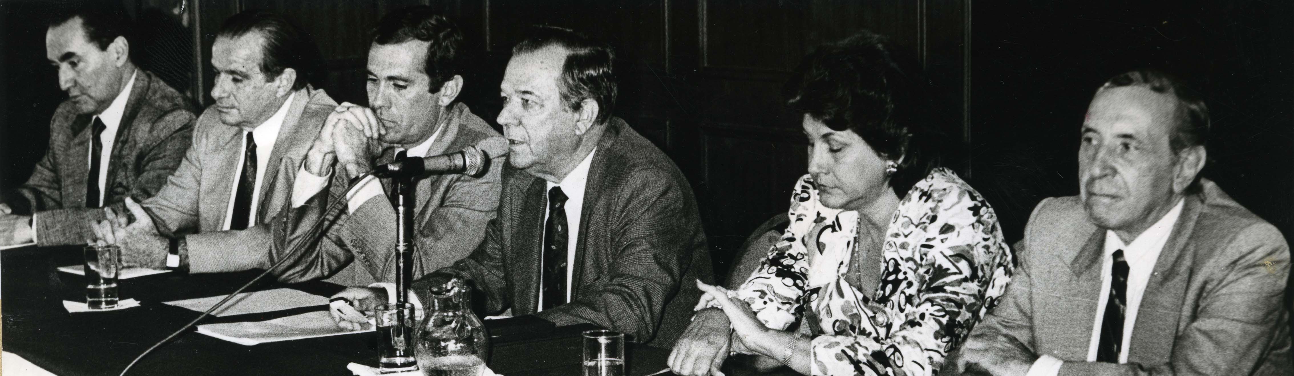 En el pie de foto dice lo siguiente: Con motivo de la celebración del décimo aniversario de Expovalle, el gerente general del IFI Rodrigo Villamizar, dictó una conferencia durante la reunión efectuada ayer en el Hotel Intercontinental. En la gráfica aparecen de izquierda a derecha, Gustavo Castaño, Harold Zangen Rodrigo Villamizar, Alberto Cobo Arizabaleta, Rosita Jaluff y Mario Barberi Zamorano.- El Archivo del Patrimonio Fotográfico y Fílmico del Valle del Cauca es responsabilidad de la Biblioteca Departamental del Valle Jorge Garcés Borrero, por convenio de cooperación suscrito con la Secretaria del Cultura Departamental, con el fin de aunar esfuerzos para su conservación, preservación y divulgación del Archivo entre la comunidad Vallecaucana, especialmente entre los estudiantes e investigadores que visitan la Biblioteca, propiciando el su uso y consulta permanente. La universidad Icesi es un colaborador en el proceso de difusión, facilitando la tecnología que permite la consulta de las imágenes.