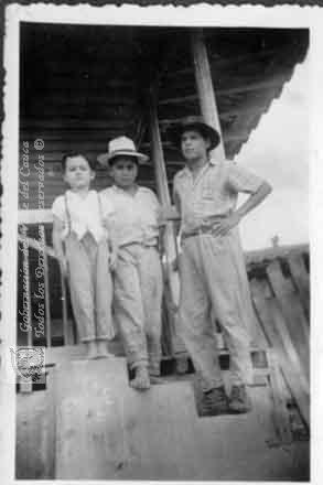 Descansando en las escaleras, con la chambrana de fondo. Caicedonia, 1955.
