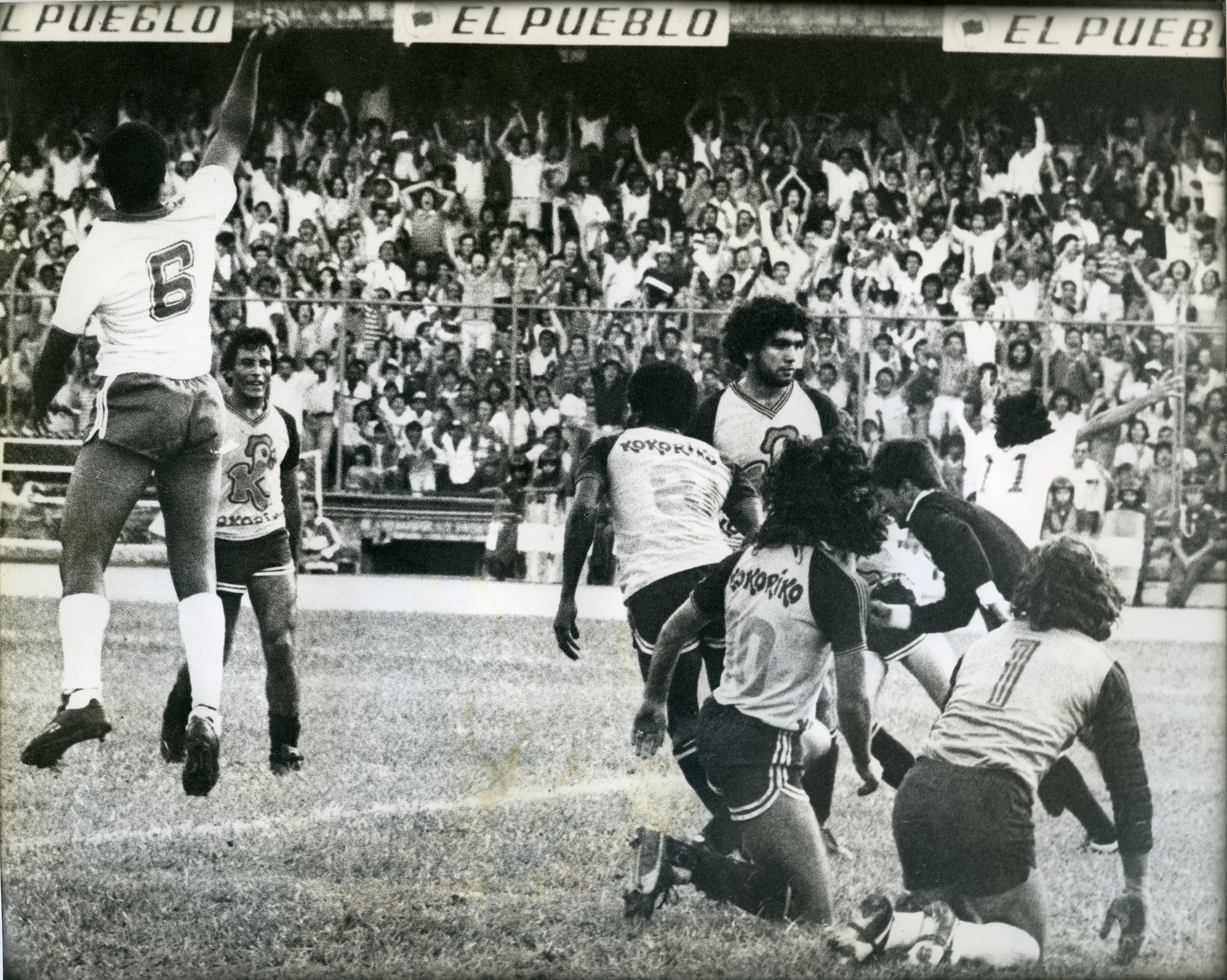 Al reverso de la fotografía dice "Celebración del 3° gol de Cali"