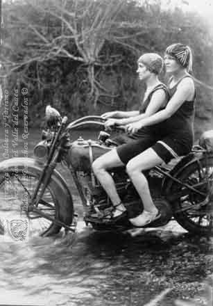 Señoritas Niessen, de paseo en su moto por el río Meléndez, Cali, 1927.