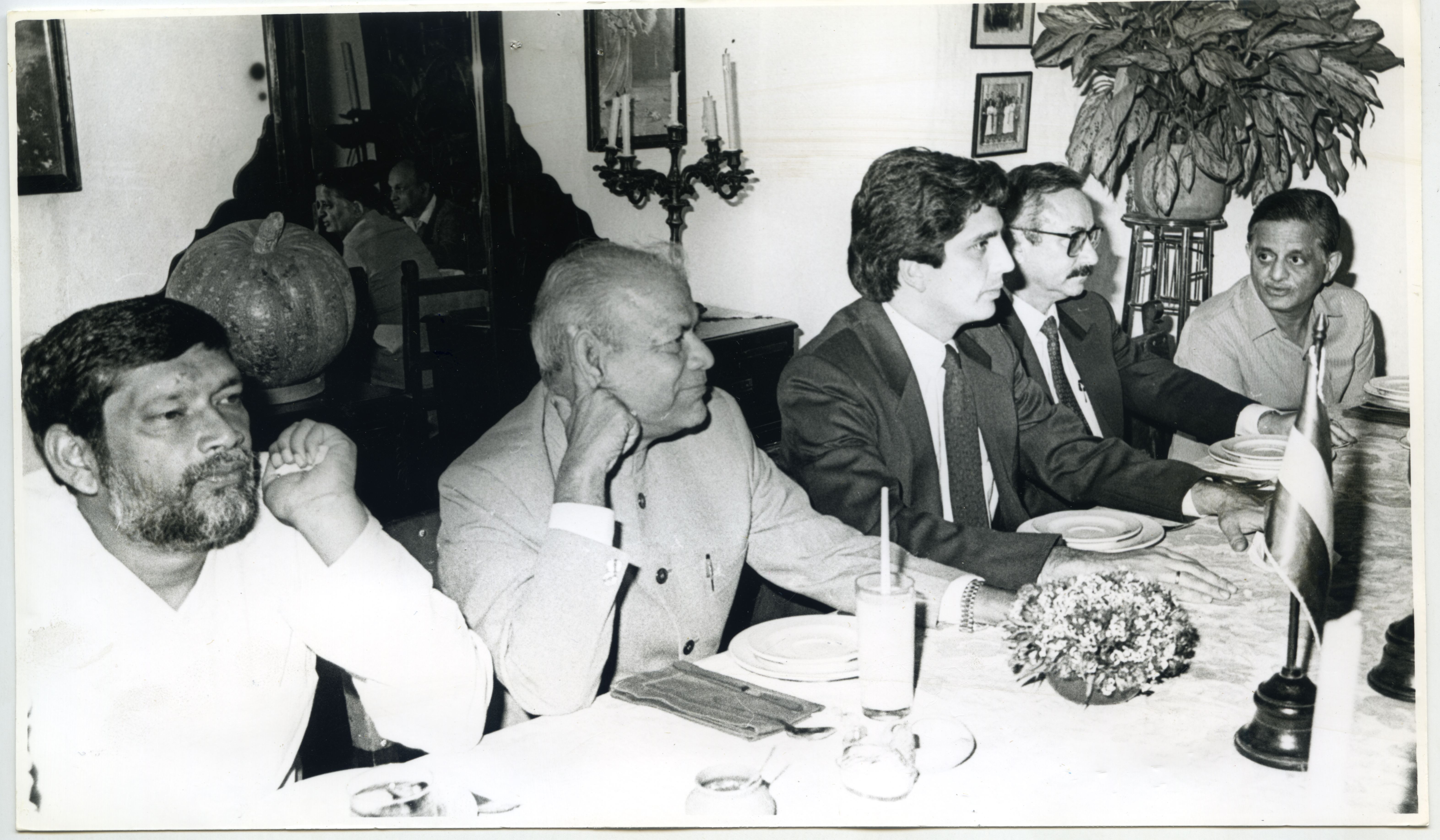 El gobernador del Valle del Cauca, Mauricio Guzmán Cuevas, ofreció una cena a la delegación Hindú que visitó al Departamento. Lo acompañan entre otros, Raby Ray, H. Panda, parlamentarios. ( Foto Ivanar).