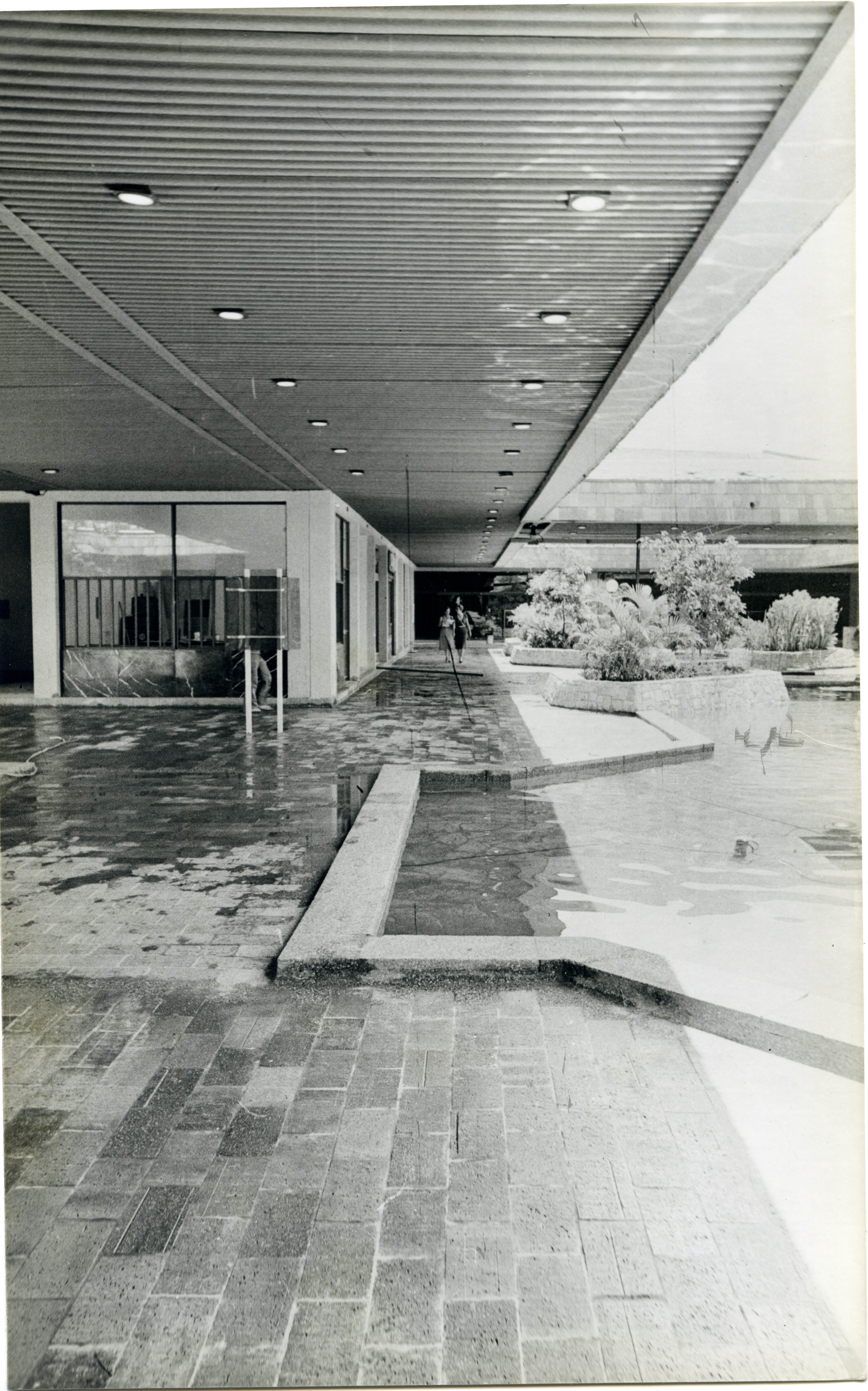 Fuentes de agua en medio de los pasillos del Centro Comercial Unicentro.