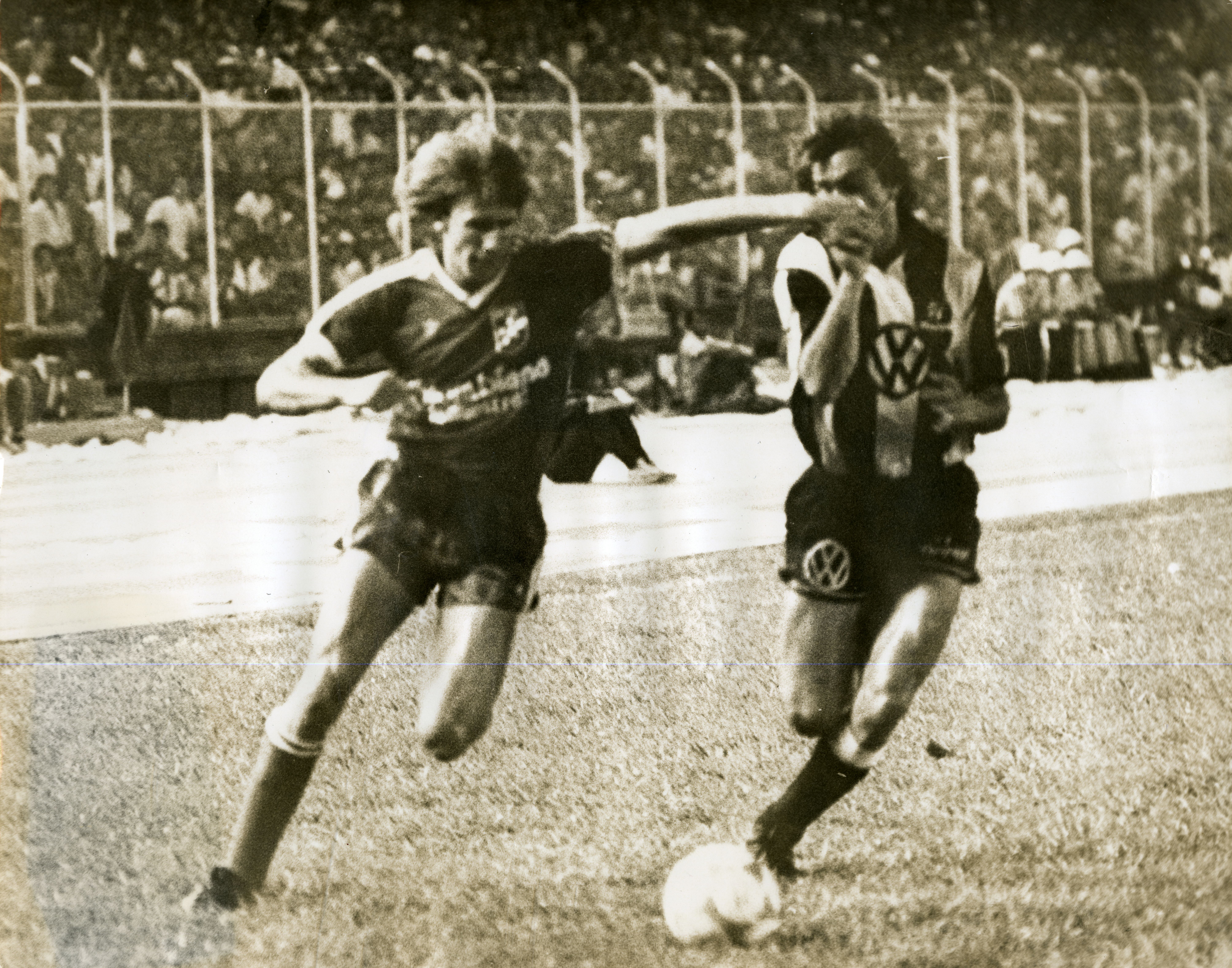 | dc.description.abstract | Partido entre los equipos América de Cali vs Peñarol de Montevideo, Uruguay, realizado en el estadio Pascual Guerrero. Se aprecia a Ricardo Gareca eludiendo la marca del jugador de Peñarol | spa |