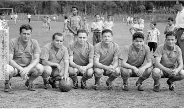 s. n. & s. n. (1980). Integrantes de equipo masculino de balompie: Guillermo Gómez, Alberto Villa, Gerardo Pino, Honorio Taborda, Álvaro Quiroga y Zorrilla, entre otros & 601438. CAICEDONIA: Biblioteca Departamental Jorge Garces Borrero.