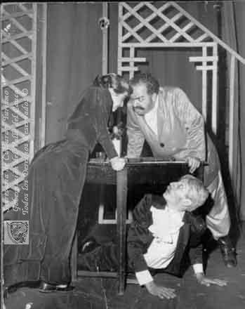 Obra teatral "El Oso" de A. Chejov. Actores y actrices: Ana Ruth Velasco, Octavio Marulanda y Edilberto Gómez.