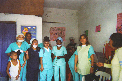Imagen tomada en exterior, donde se puede apreciar un grupo de enfermeras, con su uniforme característico