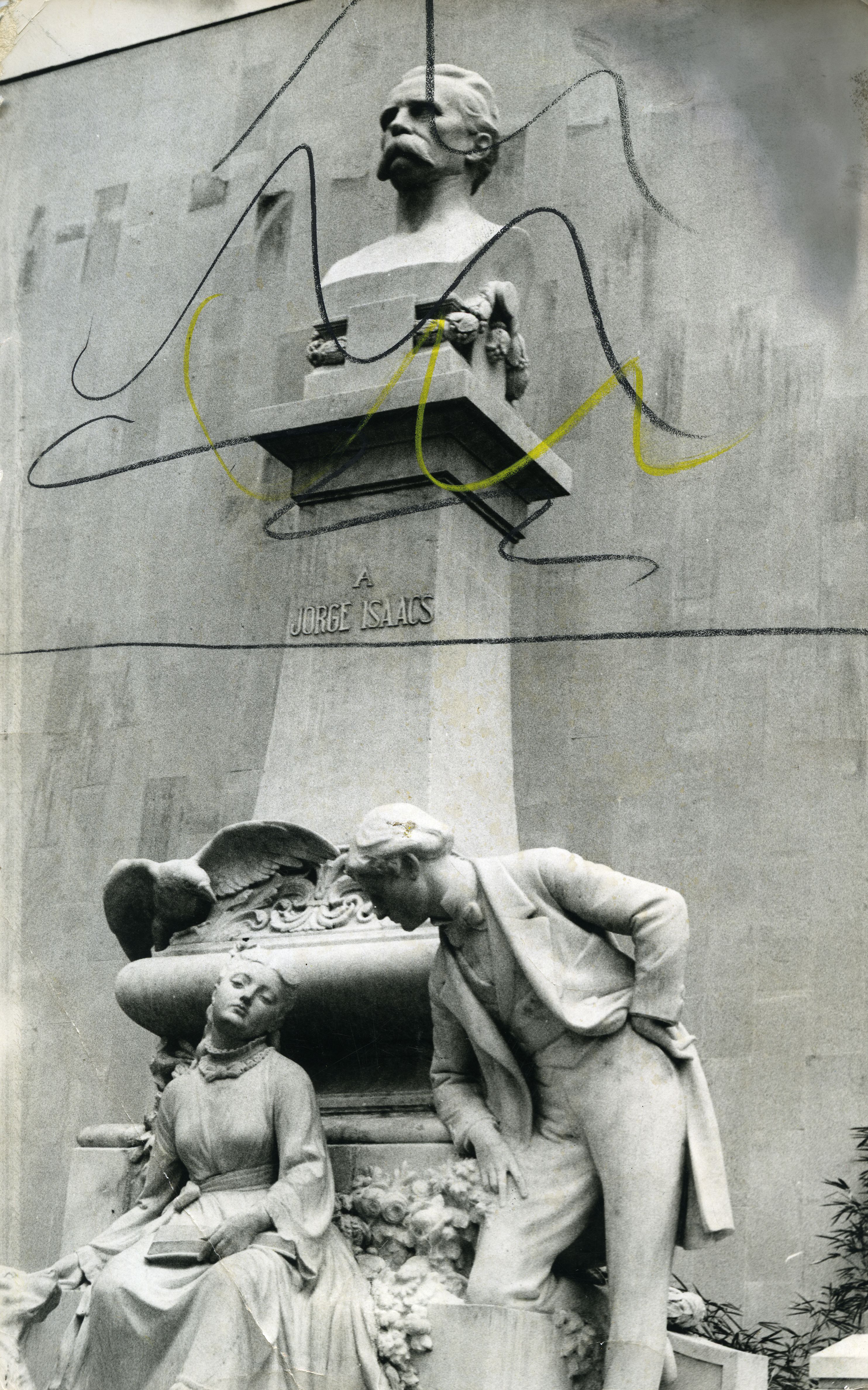 fotografía del monumento a Jorge Isaacs y su obra mas representativa, la María.