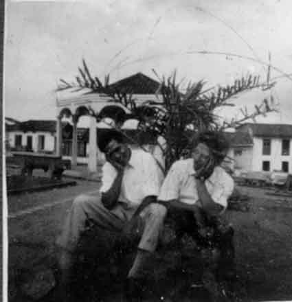Los amigos del señor Gustavo Cadavid "matando el tiempo" en el parque del pueblo. Restrepo.1948