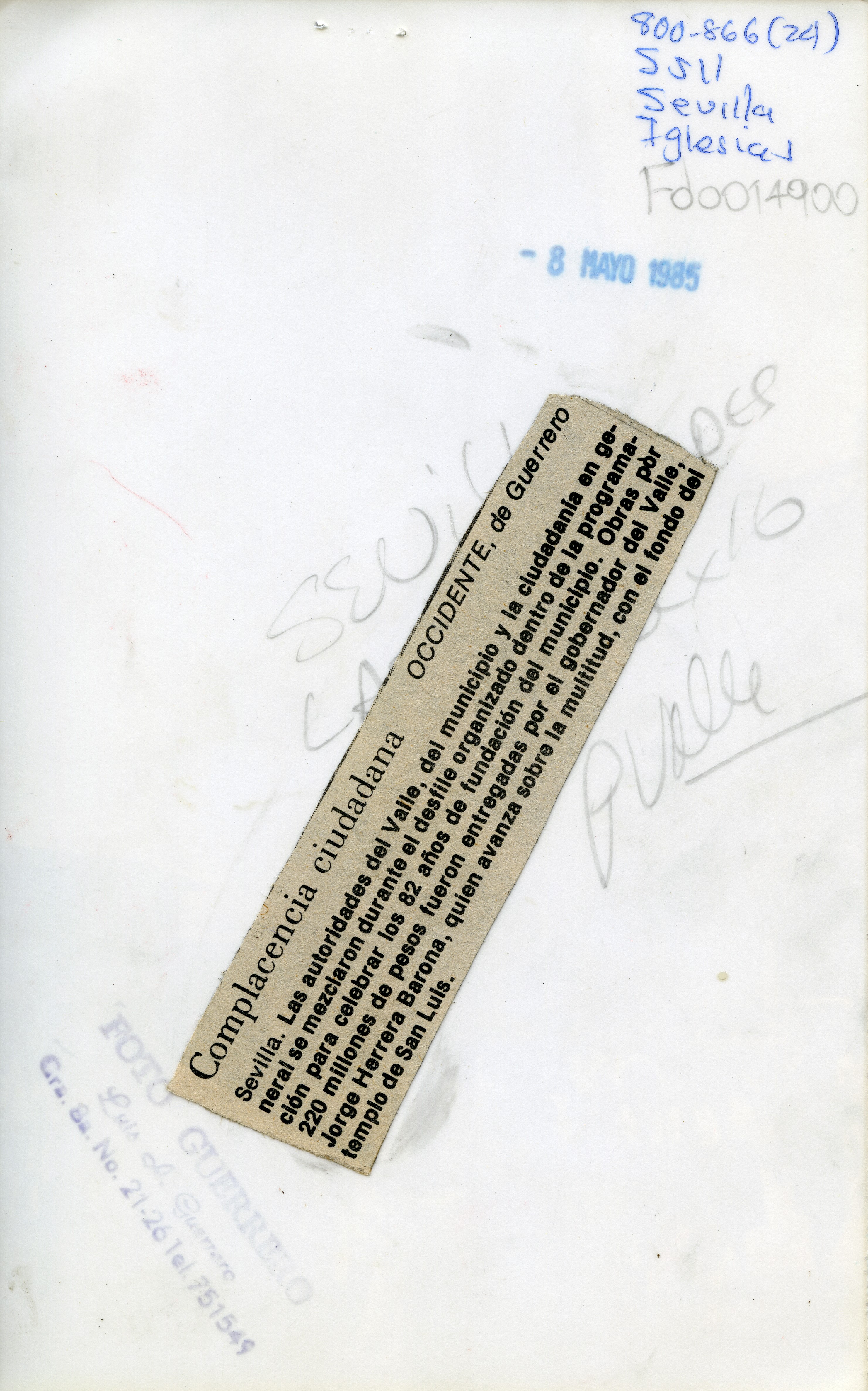 | dc.description.abstract | Al reverso de la fotografía se anexa el recorte:" Las autoridades del Valle, del municipio y la ciudadanía en general se mezclaron durante el desfile organizado dentro de la programacion para celebrar los 82 años de fundación del municipio. Obras por 220 millones de pesos fueron entregadas por el gobernador del Valle, Jorge Herrera Barona, quien avanza sobre la multitud, con el fondo del templo de San Luis." | spa |