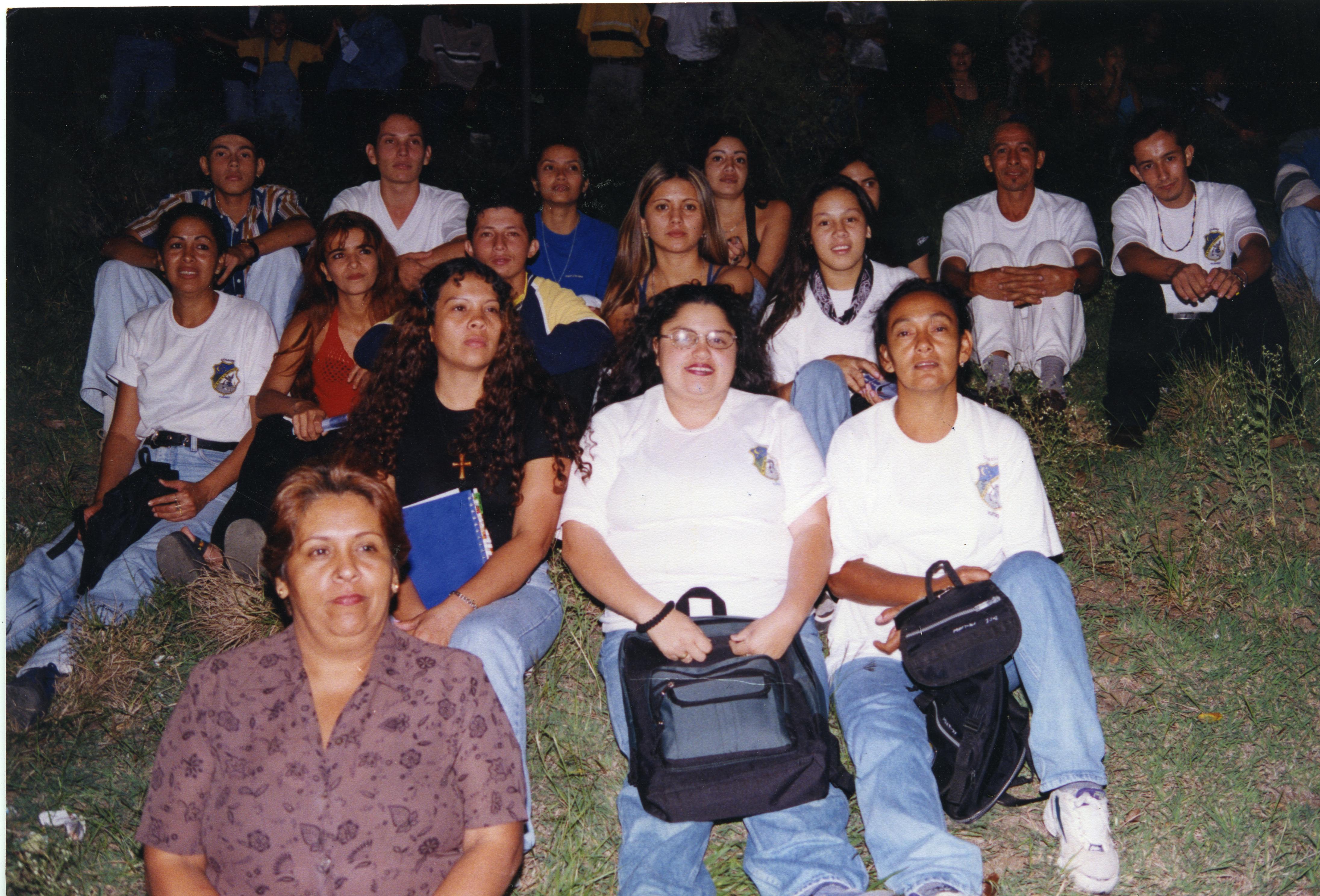Reverso "En este grupo de estudiantes de la comunidad frayalfonsina, se destaca Patricia Jaramillo, Oscar Eduardo Rojas, Paula, Francy Marroquín, y Mónica Zuñiga" Manuscrito"Cristina Jaramillo, Oscar Eduardo Rojas, Paula Velasco, Francia marroquin, Mónica zuñiga, Narciso Bustamante, Fabio Nelson Mendoza, María del Pilar Bustamante, Adriana Tobon, Jhon Joder Sanchez, Paola Soleto Mariana Mejia, Estefania Portillo, Lorena Omaya, Amparo Pérez, Rosa Drada."